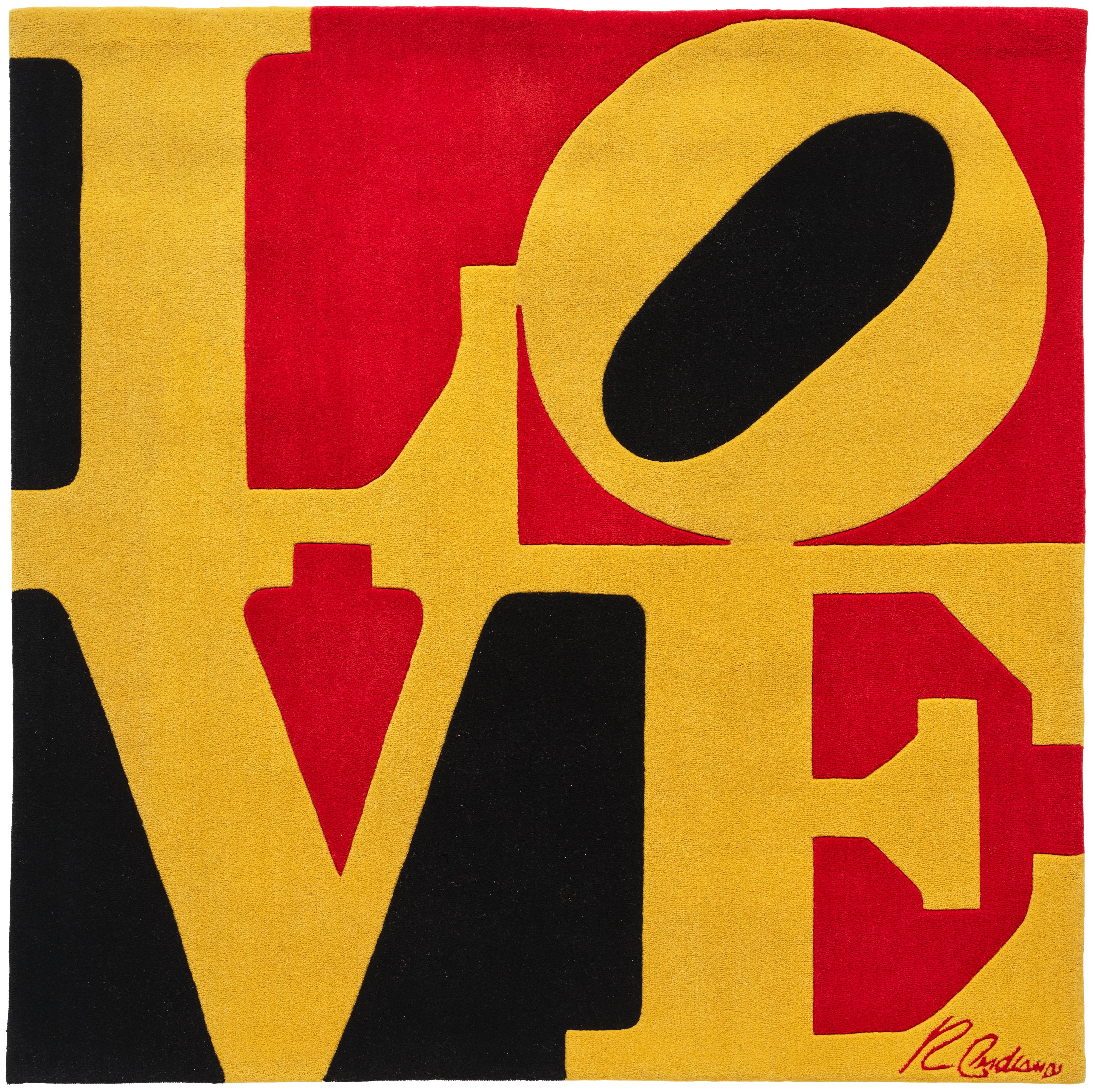 Chosen Love is a striking textile work by Robert Indiana, the iconic American artist renowned for his bold graphic imagery and text-based compositions. Executed as a limited edition rug, this piece bears Indiana's signature and numbering, exemplifying his ability to translate his distinctive visual language into diverse mediums. Published by Master Contemporary Original Artist Rugs in New York, this rare edition of 300 reflects Indiana's enduring exploration of love as both a universal theme and a powerful artistic statement.