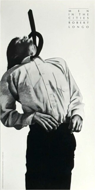 This 1991 poster presents Eric from Robert Longo's seminal 'Men in Cities' series, originally conceived in 1981. The work exemplifies the artist's groundbreaking approach to depicting urban figures in states of emotional intensity and physical dynamism. The poster format made this significant artwork accessible to a broader audience while maintaining the dramatic impact of the original concept. This piece stands as a testament to the lasting influence of Longo's exploration of contemporary urban identity.