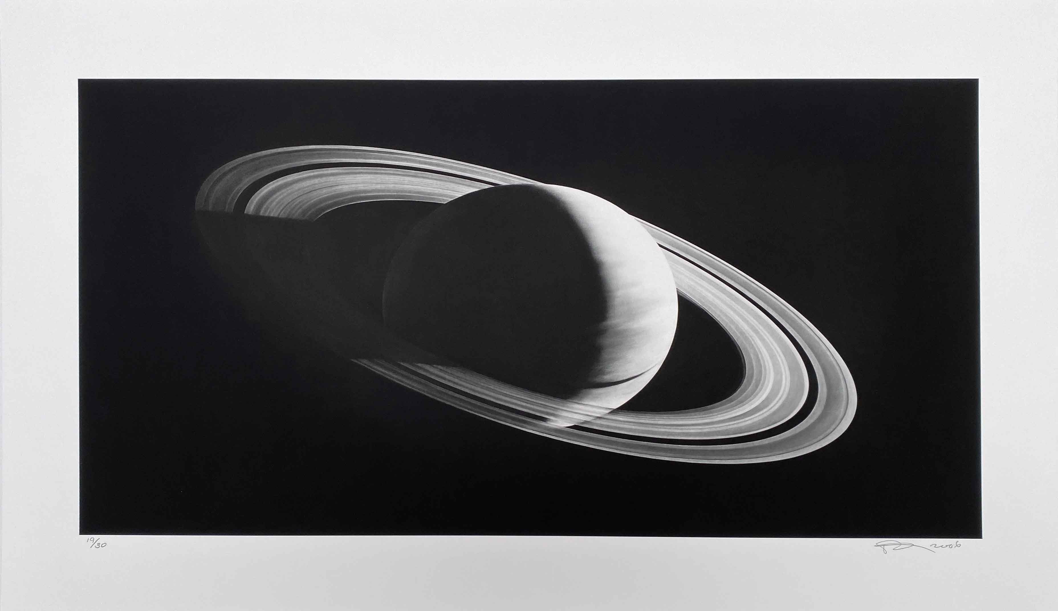 Part of Longo's signature hyperrealistic charcoal drawing series translated into archival print, *Saturn* exemplifies the artist's masterful ability to render celestial subjects with photographic precision while maintaining the dramatic chiaroscuro effects that define his distinctive aesthetic approach to contemporary realism.