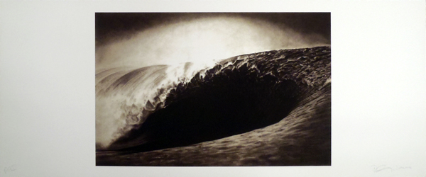This monumental lithograph exemplifies Longo's mastery of hyperrealistic representation through traditional printmaking, capturing the raw power and sublime terror of an oceanic wave with dramatic chiaroscuro effects. Part of his broader investigation into forces of nature and human vulnerability, the work demonstrates his signature ability to transform violent natural phenomena into mesmerizing, museum-worthy imagery.