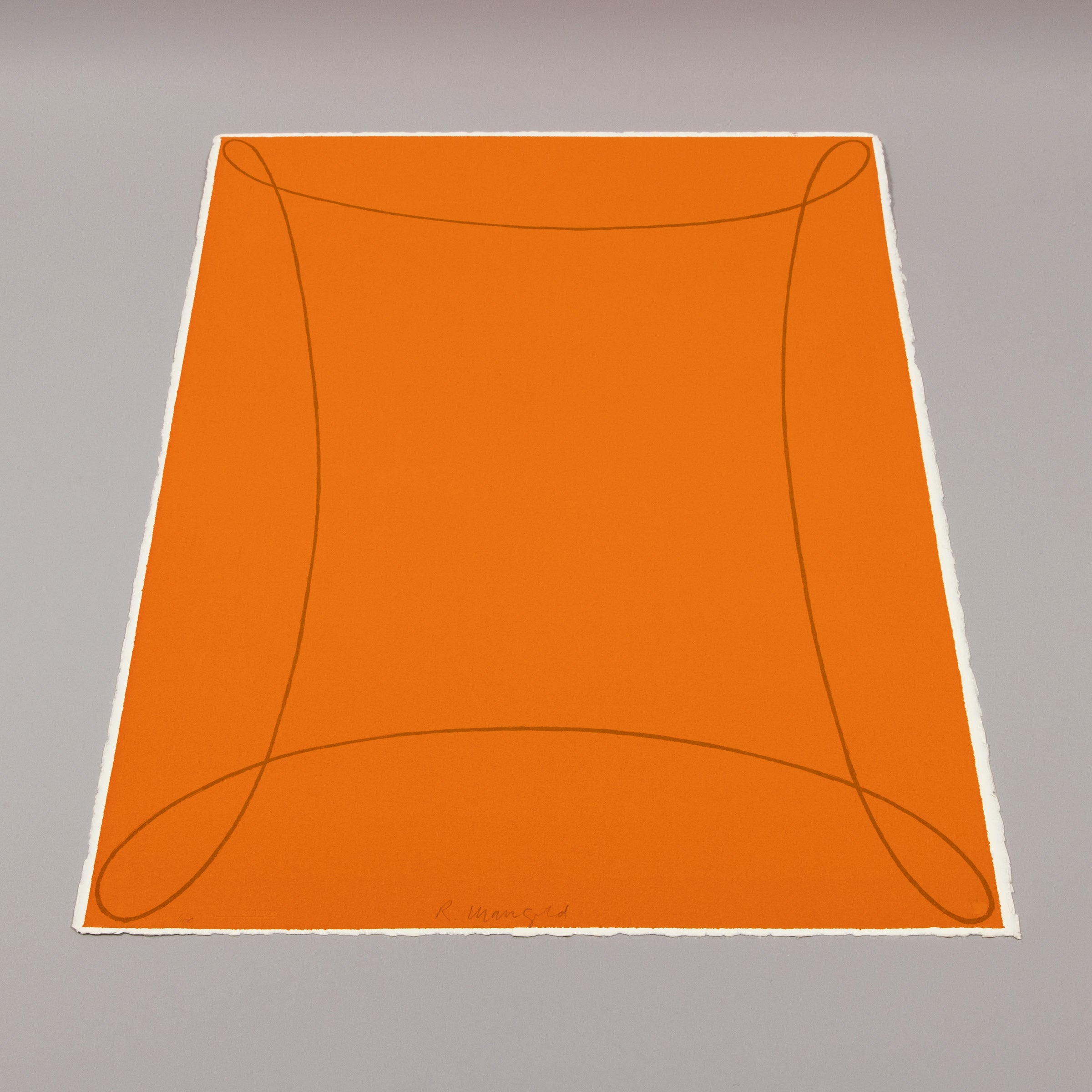 Robert Mangold (American, b. 1937) Arabesque I ( from Columbus – In Search of a New Tomorrow) , 1992 Medium: Screenprint on Arches Aquarelle paper with deckled edge Dimensions: 76.2 x 57.8 (30 x 22.75 in) Edition of 100 + 30 AP: Hand-signed and numbered in pencil Catalogue raisonné: 1992.03 (Parasol, 2000, cat. no. RM37) Condition: Excellent