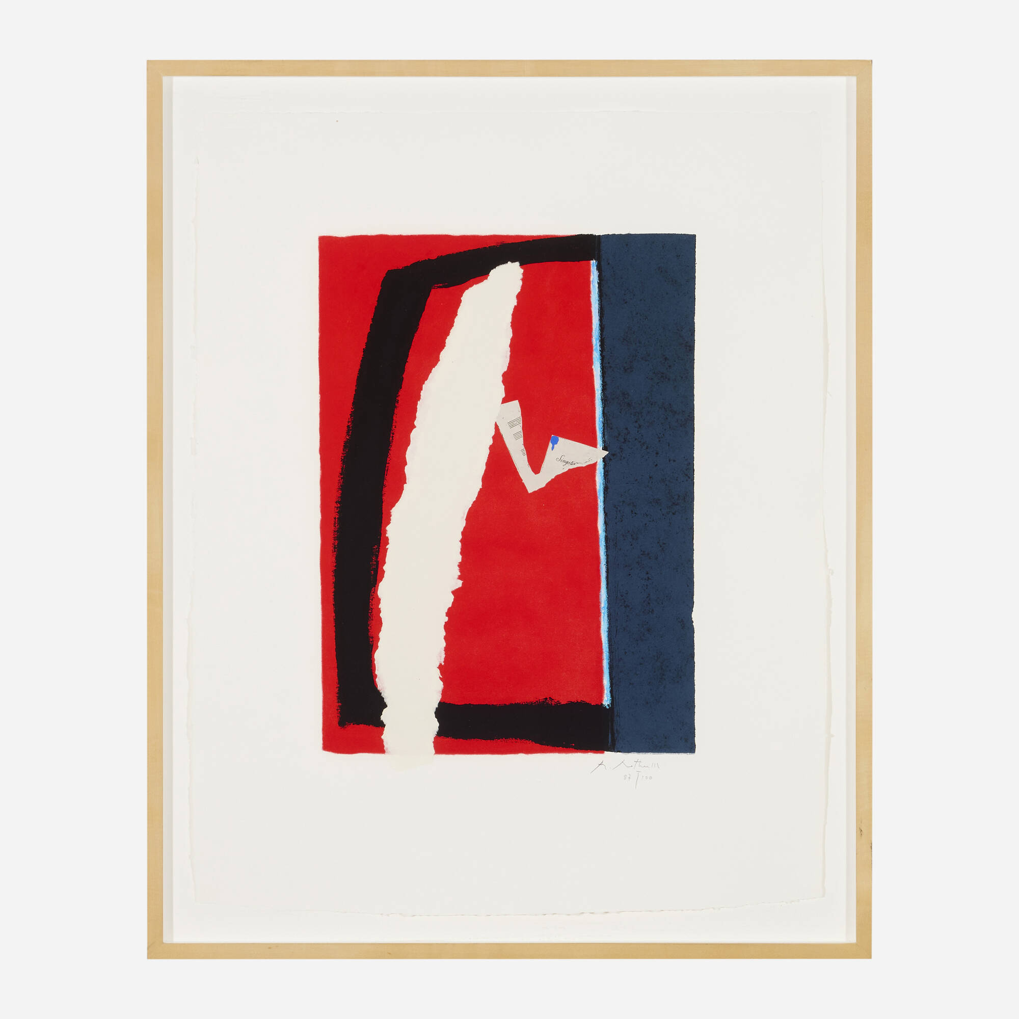 Signed and numbered to lower edge ‘R. Motherwell 87/100’ with printer's blindstamp. This work is number 87 from the edition of 100 printed and published by Tyler Graphics Ltd., Mount Kisco, NY. Provenance: Bobbie Greenfield Gallery, Santa Monica | Private Collection