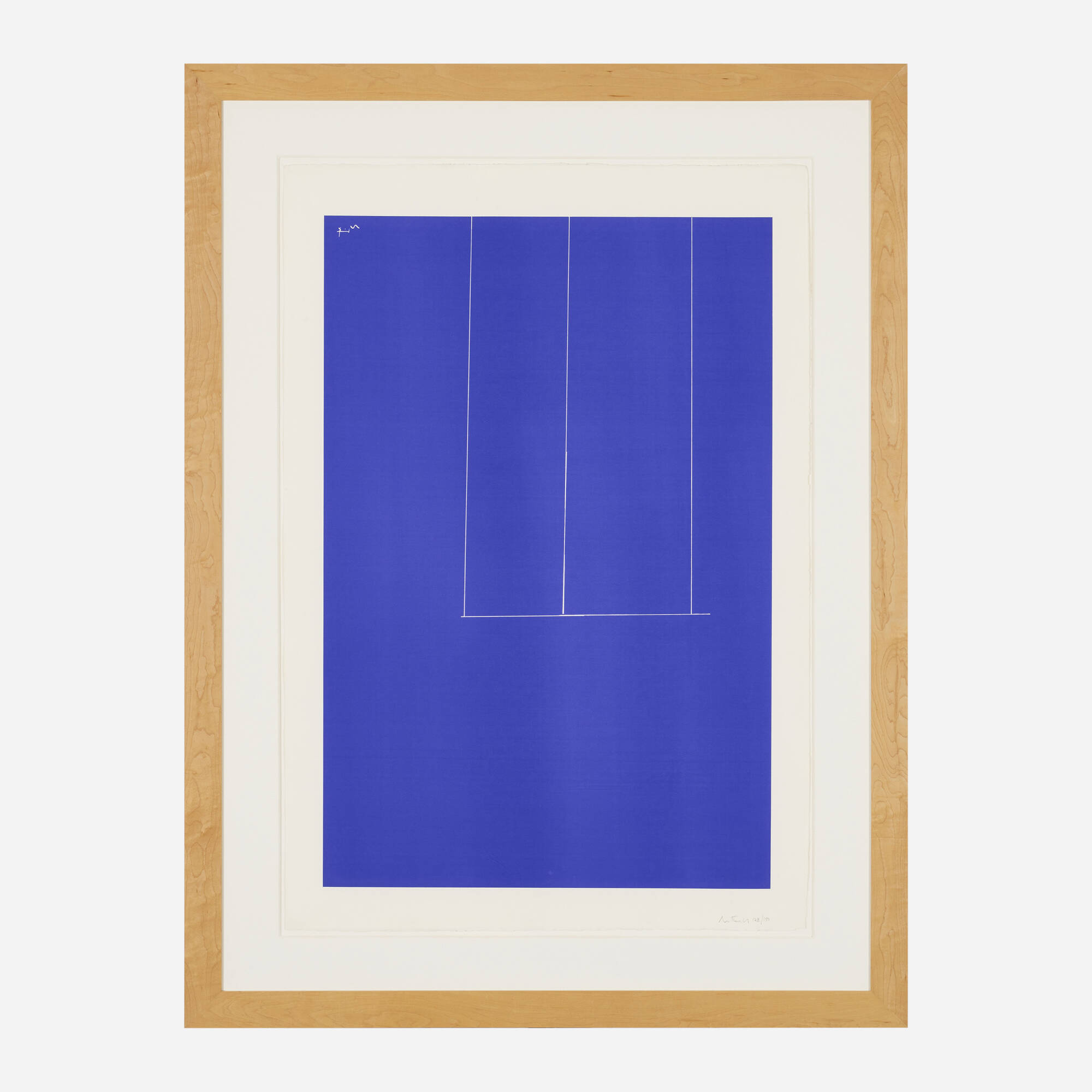 Robert Motherwell's untitled work from the London Series I features bold blue coloring created through screenprint technique in 1971. This piece demonstrates the artist's interest in exploring color relationships and spatial composition through the direct medium of screenprinting. The simplicity of the blue palette contrasts with the complexity of Motherwell's artistic vision and conceptual depth. The work reflects the artist's continued engagement with fundamental elements of visual form and chromatic expression. This London Series composition showcases Motherwell's ability to achieve powerful visual impact through restrained color and decisive compositional choices.
