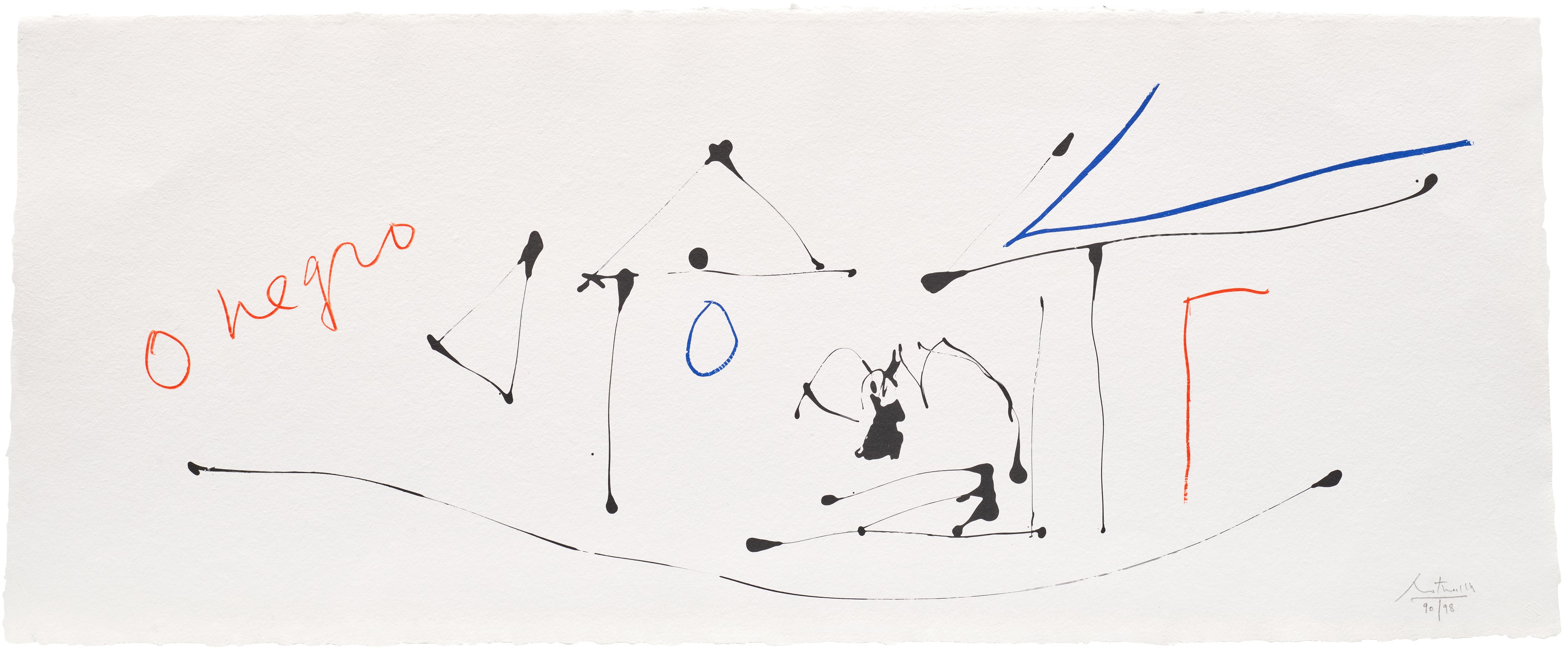 "Through Black Emerge Purified" is a lithograph by Robert Motherwell that exemplifies his abstract expressionist approach to printmaking, utilizing the medium's inherent qualities to achieve bold gestural marks and rich tonal variations. The work showcases Motherwell's characteristic use of black as a dominant compositional element, reflecting his philosophical engagement with color theory and the expressive potential of stark contrasts. Created during his prolific career in printmaking, this lithograph demonstrates the artist's ability to translate the spontaneity and emotional intensity of abstract expressionism into the disciplined technical process of stone or metal plate printing.