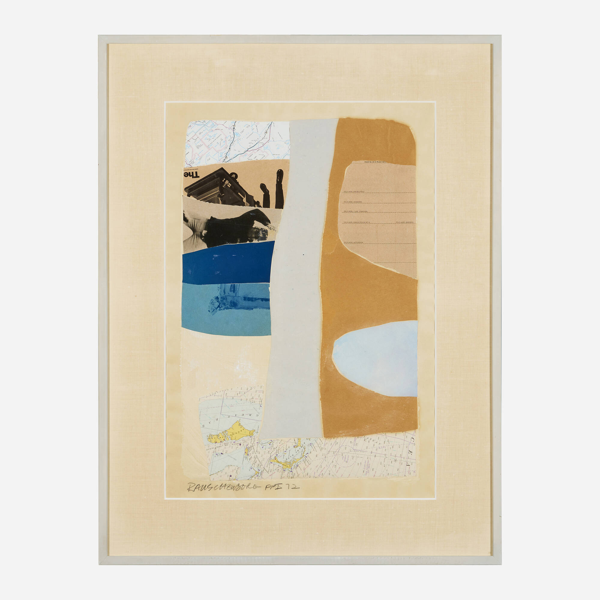 Robert Rauschenberg's Composition from the Tares series showcases his mastery of collage techniques through uniquely layered colored papers. This 1972 work demonstrates the artist's innovative approach to combining found materials and fragments into cohesive visual compositions. The piece reflects Rauschenberg's commitment to breaking down boundaries between traditional art materials and everyday objects. The intricate arrangement of colored papers creates a dynamic interplay of texture and form throughout the work. This composition exemplifies the experimental spirit that defined Rauschenberg's artistic practice during the early 1970s.