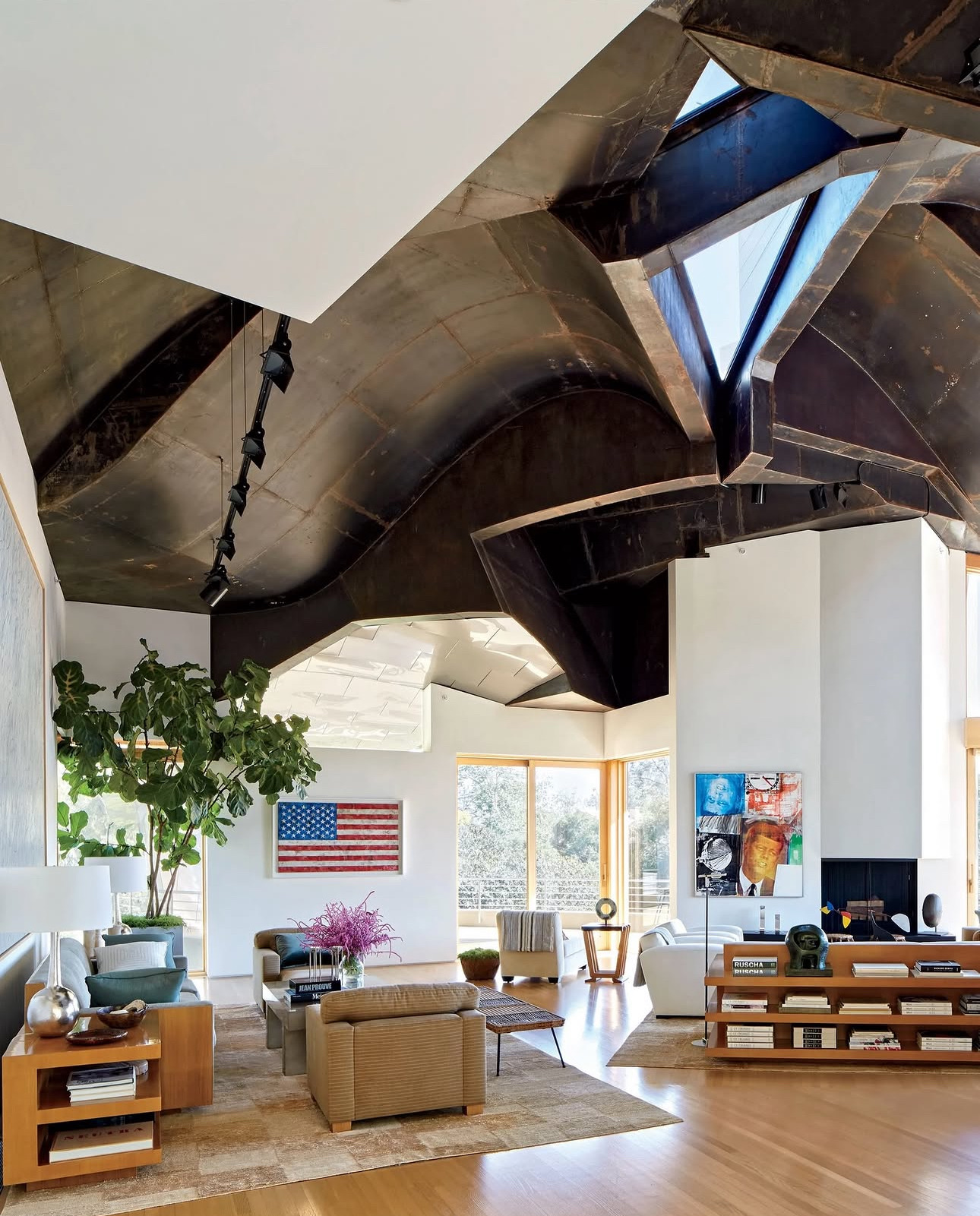 A historically significant 1963 silkscreen by Robert Rauschenberg featuring images of John F. Kennedy, created during a pivotal moment in both American history and the Pop Art movement. This work exemplifies Rauschenberg's innovative combines and transfer techniques that bridged Abstract Expressionism and Pop Art. The piece is part of an important collection that includes works by Jasper Johns, Alexander Calder, and Henry Moore, displayed in a spectacular architectural setting with a sculptural stainless-steel ceiling. Rauschenberg's silkscreen process allowed him to incorporate photographic imagery and cultural iconography into fine art, making him one of the most influential American artists of the 20th century.