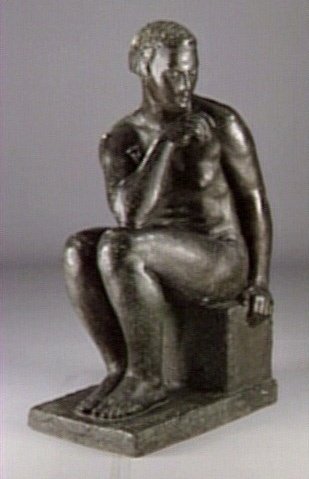 Wlerick's bronze figure exemplifies the sculptor's ability to combine classical poses with modernist simplification, creating a sense of inner contemplation through minimal means.