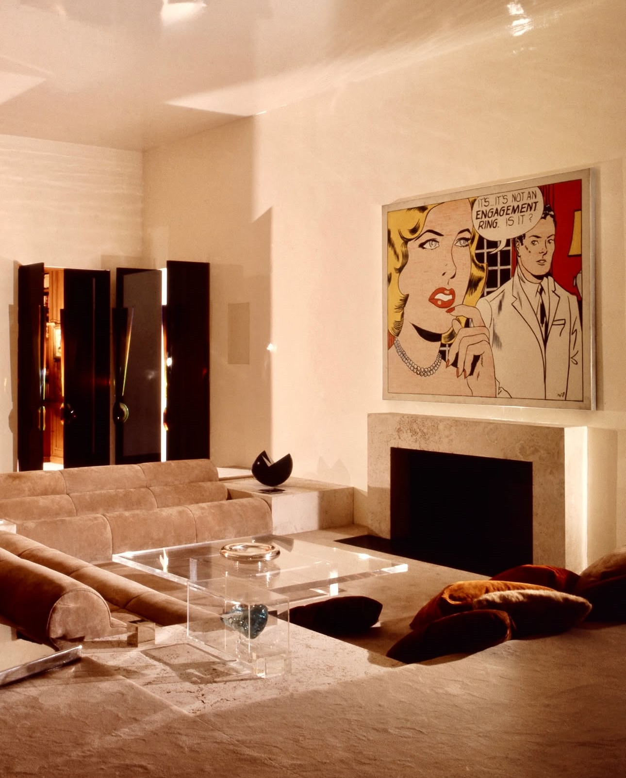 For my latest article for Sotheby's Magazine, 1 travelled to Palm Beach to meet Ronnie Heyman and discuss one of the defining works in her collection: Roy Lichtenstein's "The Engagement Ring" from 1961. It was the largest of the four paintings Lichtenstein showed to Ivan Karp at Leo Castelli Gallery in the autumn of 1961 — a turning point that set him on the path to becoming one of the most influential American artists of the 20th century. The painting went on an extraordinary journey, moving between different collections in the United States and Italy. It was first acquired by Count Giuseppe Panza di Biumo, and later by Ernst Wilhelm Sachs, who hung it in the sunken living room of his legendary Rome apartment designed by Giorgio Pes and Roberto Federici. Heyman first encountered the painting in her youth at an exhibition at The Met. Decades later, she was offered the chance to acquire it. Today, it remains one of the most treasured works in her collection. Read the full story via the link in my bio. Photograph 1: Ronnie Heyman in her Palm Beach apartment with Roy Lichtenstein's "The Engagement Ring" (1961). Photographed by Lucas Oliver Mill in 2025. Photograph 2: "The Engagement Ring" hangs in the Rome apartment of Ernst Wilhelm Sachs. Photographed by Carla de Benedetti in the early 1970s. Photograph 3: Lichtenstein at Leo Castelli Gallery with "The Engagement Ring". Photographed by Bill Ray in 1962. - Via Lucas Oliver Mill for Collectorwalls
