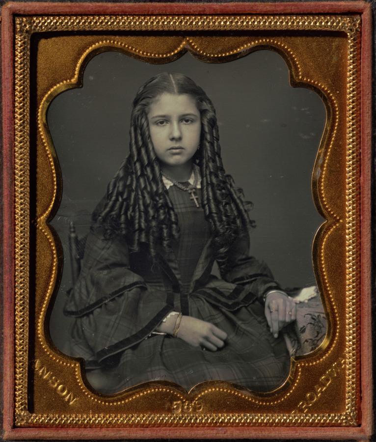 Anson's daguerreotype demonstrates the technical precision of early American portrait photography, preserving the fashionable bottle curls hairstyle popular among young women in the 1850s.