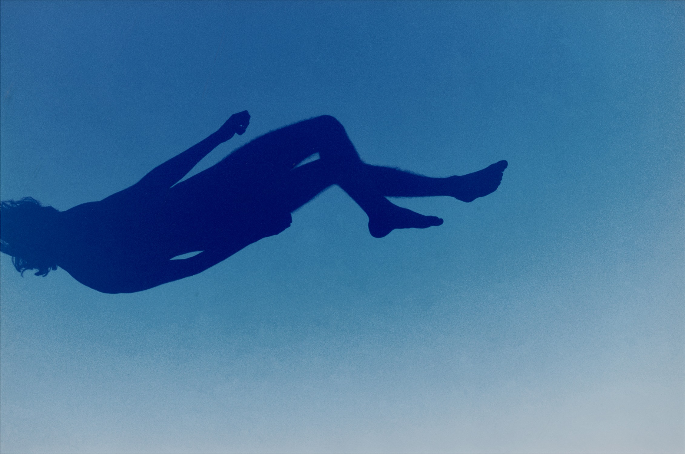 Ryan McGinley's 'Blue Falling' is a chromogenic print capturing dynamic movement or descent within a blue-toned color palette. The photograph exemplifies McGinley's exploration of nature, human figures, and atmospheric conditions through color-saturated photographic practice.