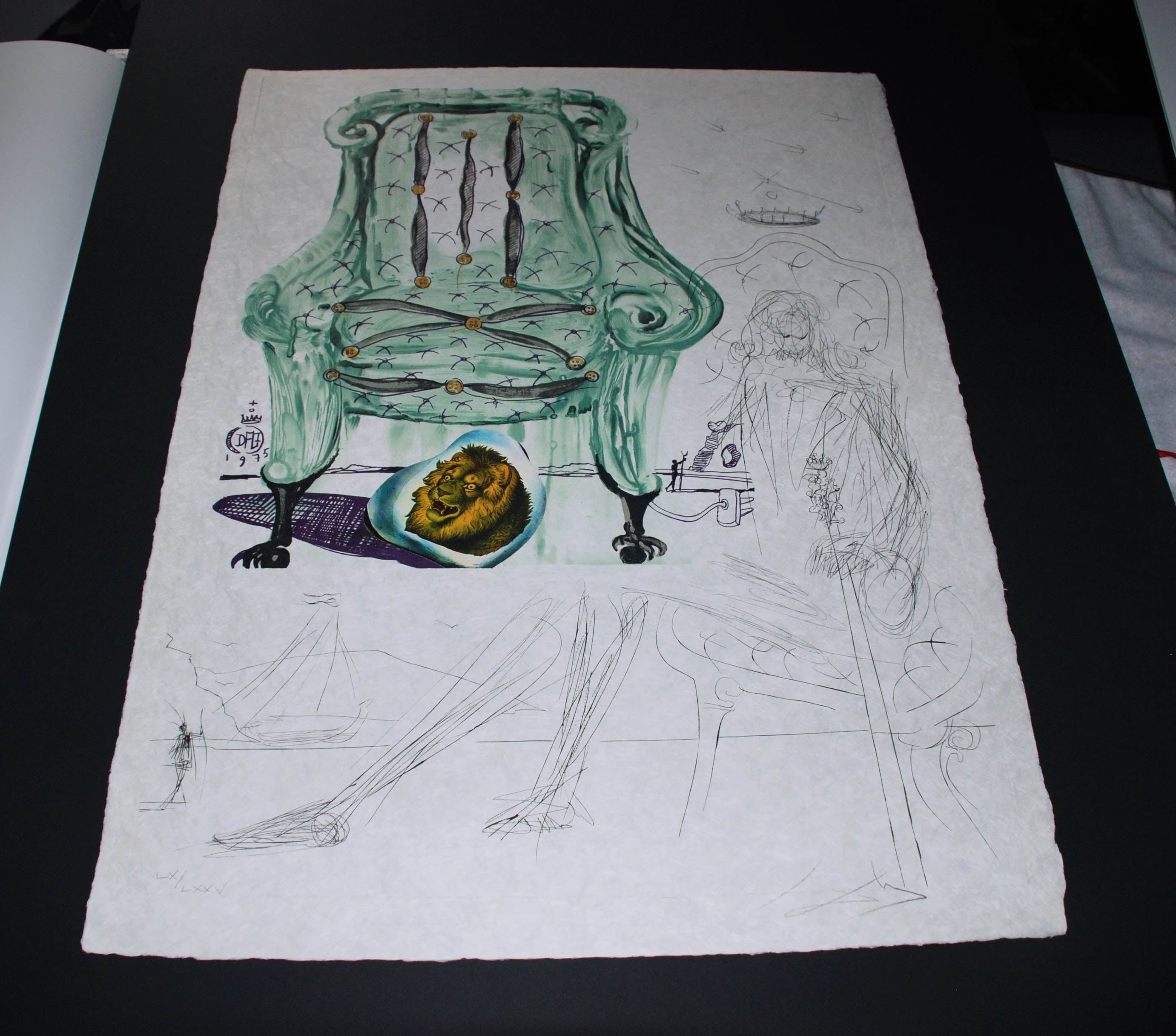 - Salvador Dali, Breathing Pneumatic Armchair, 1975 Imaginations and Objects of the Future Portfolio, (Field 75-11E), 1975, Signed, Lithograph with collage on Japon paper, Edition LX/LXXV, 40" x 37" Framed Size, 30 3/4" x 27" Sheet Size, 28" x 21 1/2" Image Size