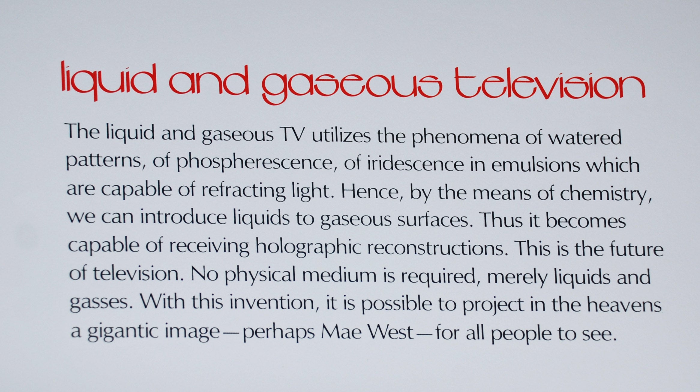 Imaginations and Objects of the Future Liquid and Gaseous Television