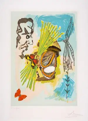- Lithograph printed in colours, 1978, signed and inscribed 'HC' in pencil, numbered from the hors commerce edition of 65 in roman numerals, printed by Siena Studio, New York, published by Levine & Levine, New York, on Arches wove paper, with full margins, sheet 748 x 545mm (29 3/8 x 21 1/2in) (unframed), With the Dalí Trade authentication inscription and signature in pencil verso (3/5/26), Condition, Related Lots, BACK TO AUCTION CATALOGUE, Salvador Dalí (1904-1989) Wealth, Health, Fame and Love,