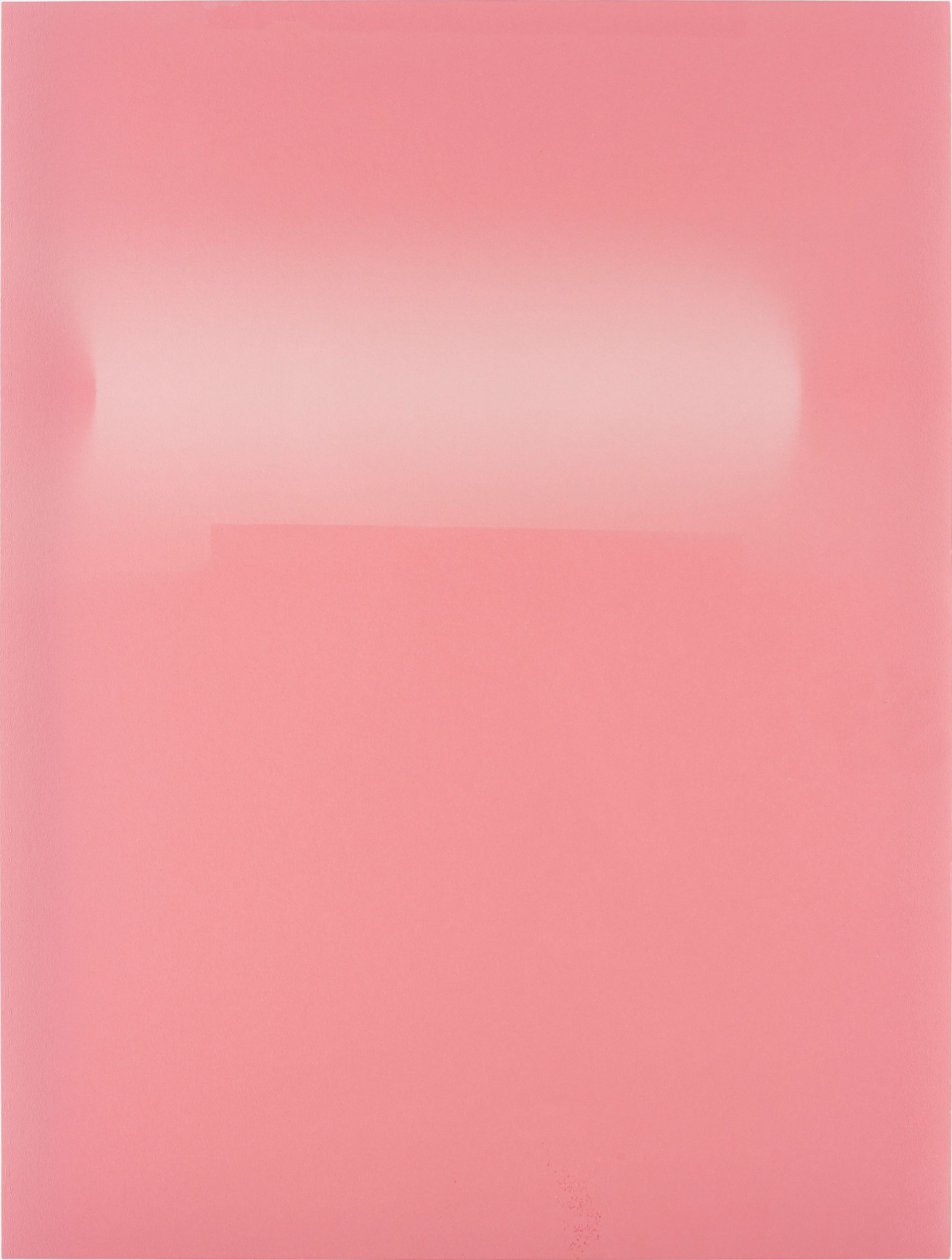 Sam Falls' *Untitled (Pink Roll)* is a sensory exploration of materiality and process, in which the artist employs natural elements and atmospheric conditions to imprint color and texture onto paper. The work reflects Falls' signature approach of surrendering artistic control to the environment, allowing rainfall, pigment, and time to become co-creators of the final piece. The resulting soft, luminous pink tones evoke both the fragility and resilience of the organic world.