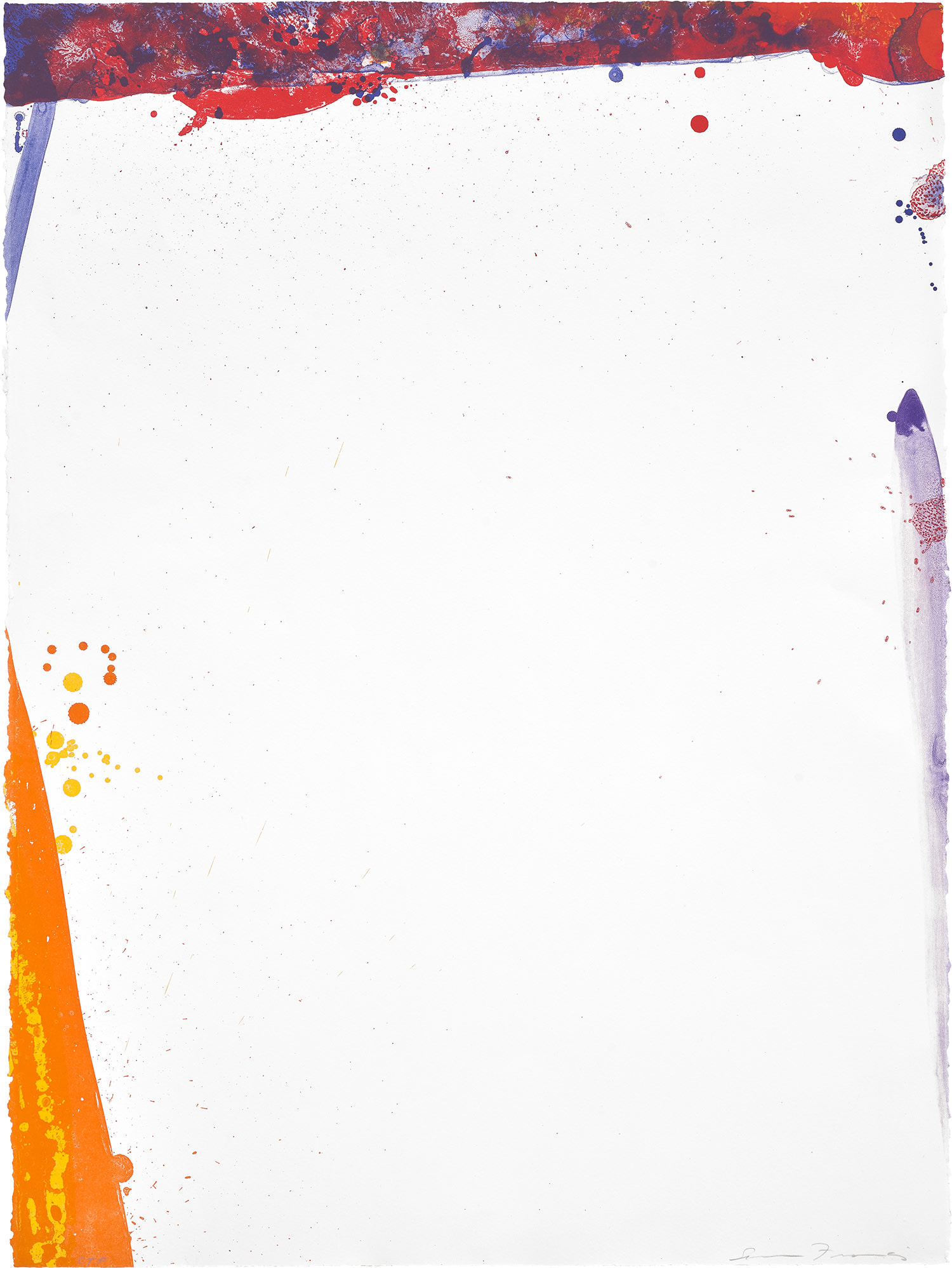 A unique colored lithograph by Sam Francis titled 'Chinese Wall,' created on Arches paper with full margins. The work demonstrates Francis's mastery of color and form in the lithographic medium.