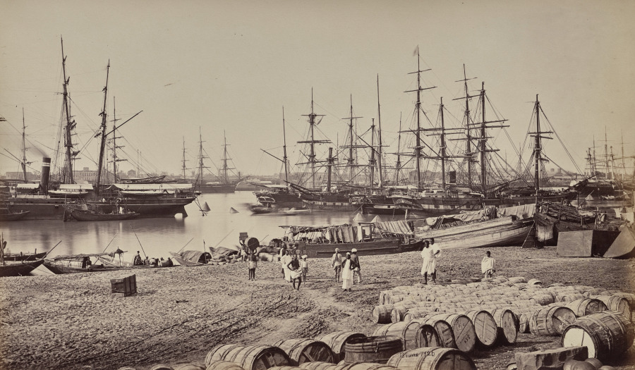 Commercial photography serves imperial documentation as Bourne records the vital shipping hub of British India, with the Hooghly River serving as gateway to the subcontinent's wealth.
