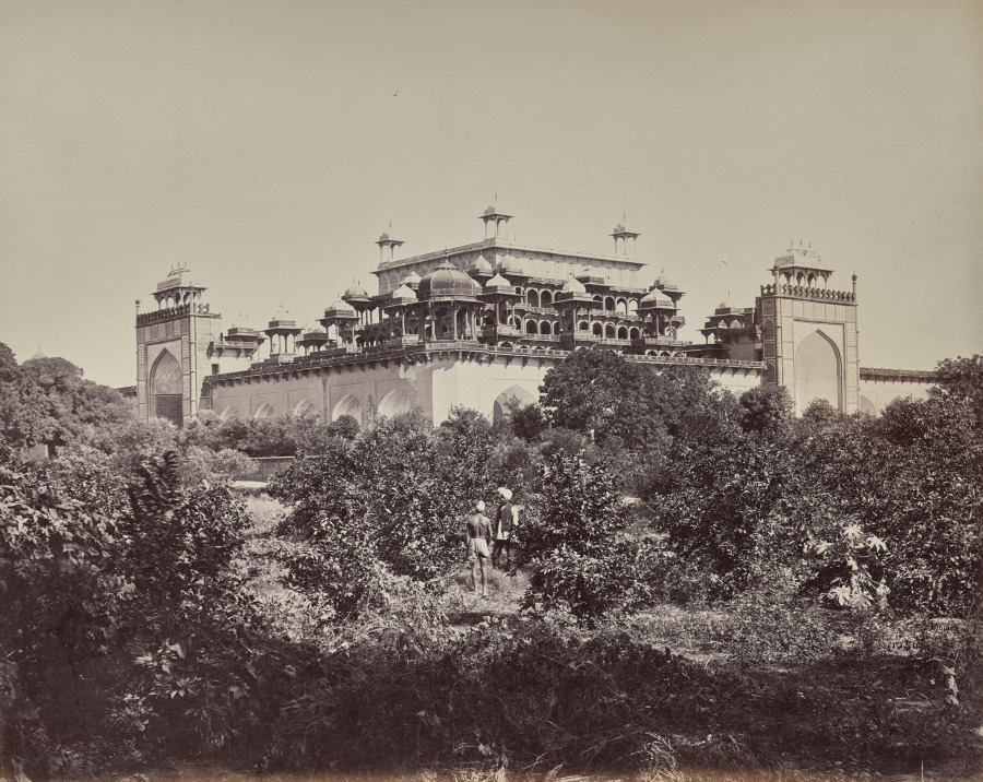 Mughal imperial grandeur meets Victorian documentation as Bourne's camera preserves Akbar's magnificent tomb, demonstrating photography's power to record architectural heritage.