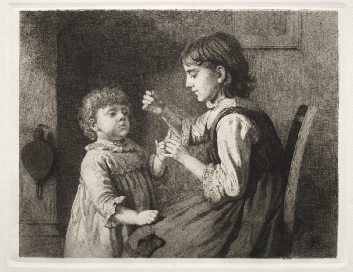 Guy's sentimental subject matter reflects the Victorian fascination with childhood innocence, rendered here through the delicate lines and tonal subtleties of etching.
