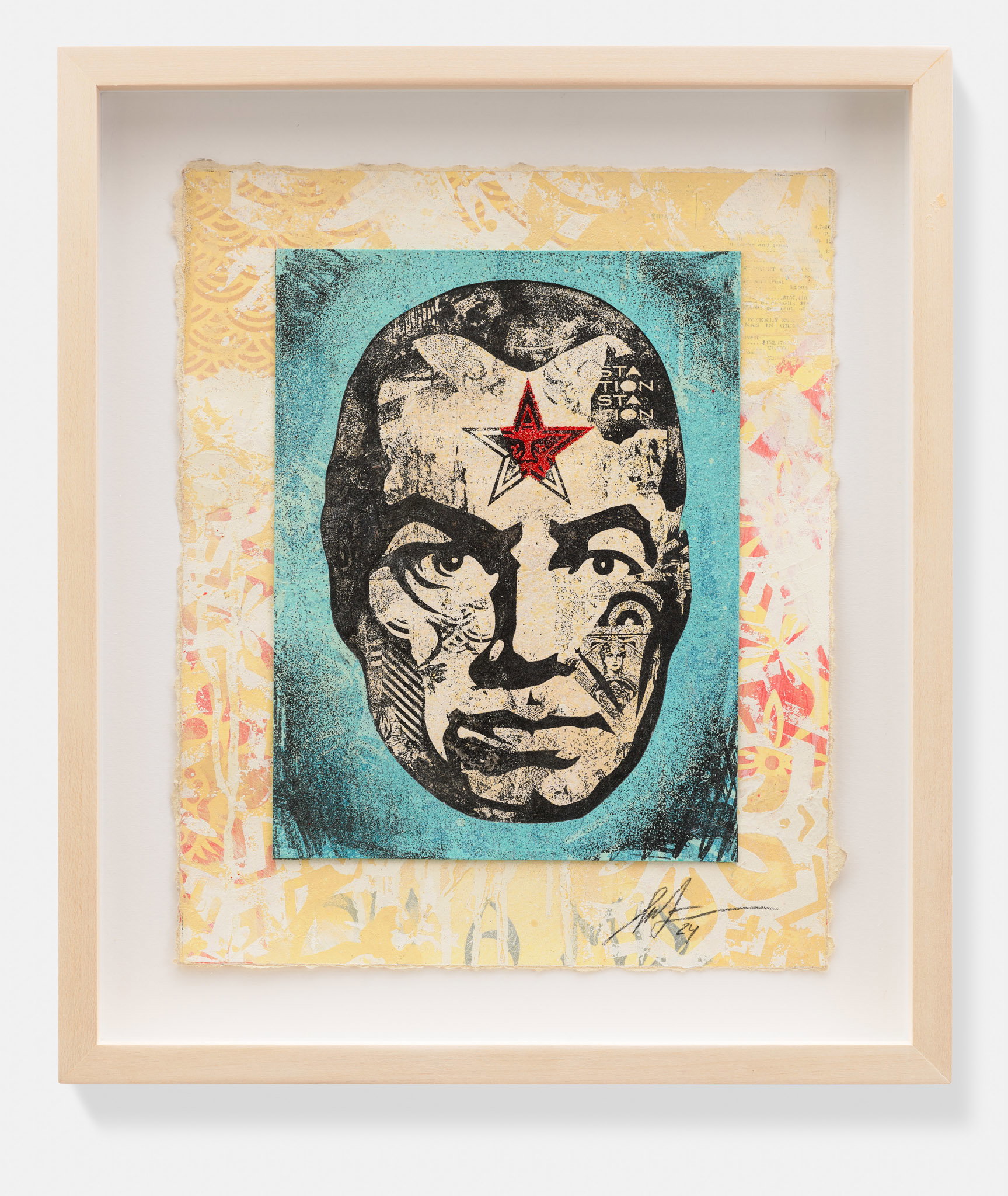 Big Brother, Version 3 places Fairey's work in direct dialogue with one of the twentieth century's most enduring political warnings, invoking Orwell's surveillance state through the artist's evolved and refined graphic language of stencil, silkscreen, and collage on paper. As the third iteration of this theme in Fairey's practice, the work reflects a sustained and deepening engagement with surveillance, control, and the aesthetics of authoritarianism — concerns that have only grown more urgent in the digital age. Fairey's technique of layering found imagery, hand-cut stencils, and screen-printed patterns creates surfaces that feel simultaneously archival and contemporary, as though historical and present-day systems of control have been compressed into a single image. The work's place within Triple Trouble connects the street-art tradition of reclaiming public space to the larger cultural conversation about who watches, who is watched, and who controls the narrative. It is a reminder that the OBEY movement was always about making visible the forces that prefer to remain unseen.