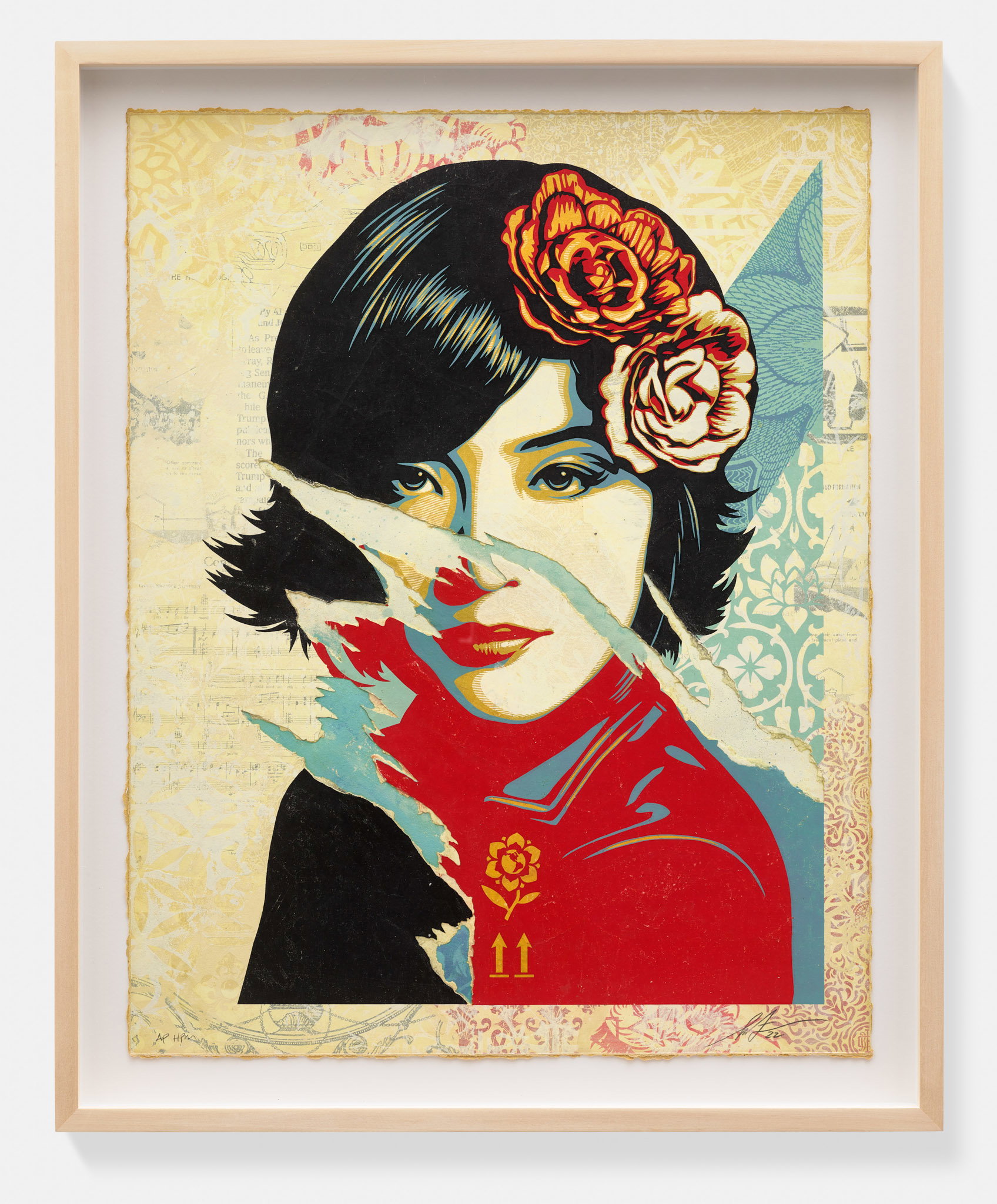Open Minds AP3 is a standout work from Fairey's practice that embodies his belief in art as a catalyst for perceptual and political transformation, with the title functioning as both an instruction and an aspiration. Created using silkscreen and mixed media collage with hand-painted intervention as an Artist Proof HPM, the piece occupies a privileged space between edition and original — the hand-painted elements ensuring that no two works are identical despite sharing a common printed foundation. Fairey's characteristic layering of patterned backgrounds, portraiture or figurative stencils, and declarative text creates a dense visual field that rewards close looking, pulling the viewer into its propaganda aesthetic only to deliver a more open, humanist message. Within the Triple Trouble context, the work reflects a philosophical counterpoint to the potential nihilism of other pieces in the collection, advocating for curiosity and receptivity as acts of resistance. The AP designation — Artist Proof — also signals this as a work of particular personal significance within the edition, one step closer to Fairey's direct hand.