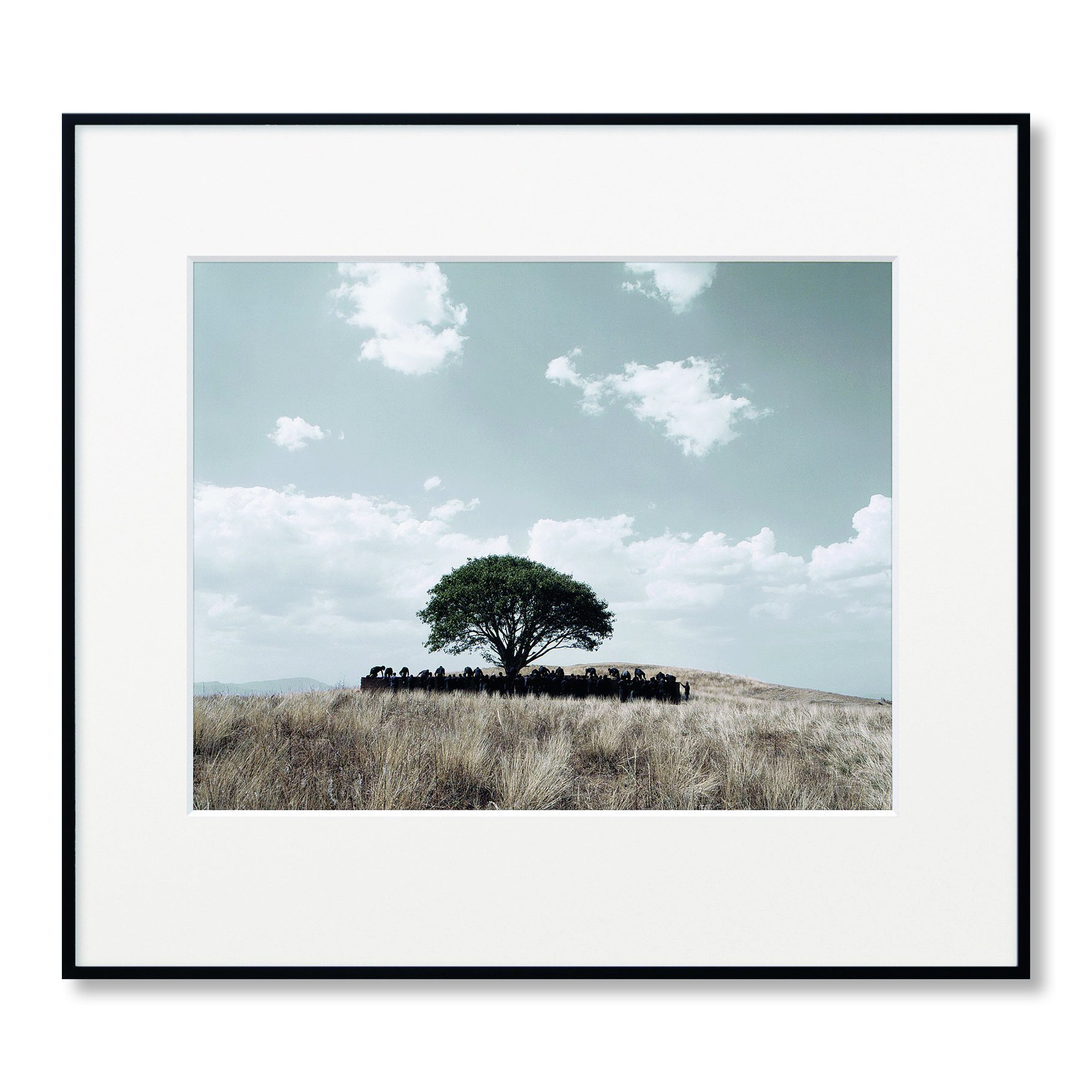 Shirin Neshat 's Tooba is a striking c-print from her celebrated Tooba Series (2002), inspired by the novel Women without Men by Iranian writer Shahrnoush Parsipour. This signed photography edition features a group of figures standing around a large, sacred tree symbolizing the feminine tree of paradise from the Koran, a powerful motif in contemporary political art exploring themes of refuge, transcendence, and women's struggles in conservative societies. Filmed in color near Oaxaca, Mexico, Neshat's poetic allegory blends magic realism with minimalist elegance, creating a limited edition artwork that bridges documentary photography and symbolic narrative. The tree becomes a source of strength and sanctuary, rendered with the visual precision and conceptual depth that defines Neshat's internationally acclaimed practice as one of the most important contemporary artists addressing gender, identity, and cultural displacement. Why collectors choose this work: Hand-signed photography by Shirin Neshat, museum-quality c-print, iconic imagery from the Tooba Series , and a significant example of contemporary political art that combines feminist themes with poetic visual storytelling.