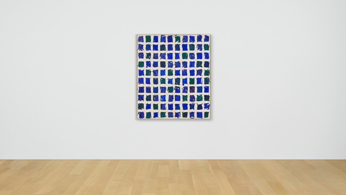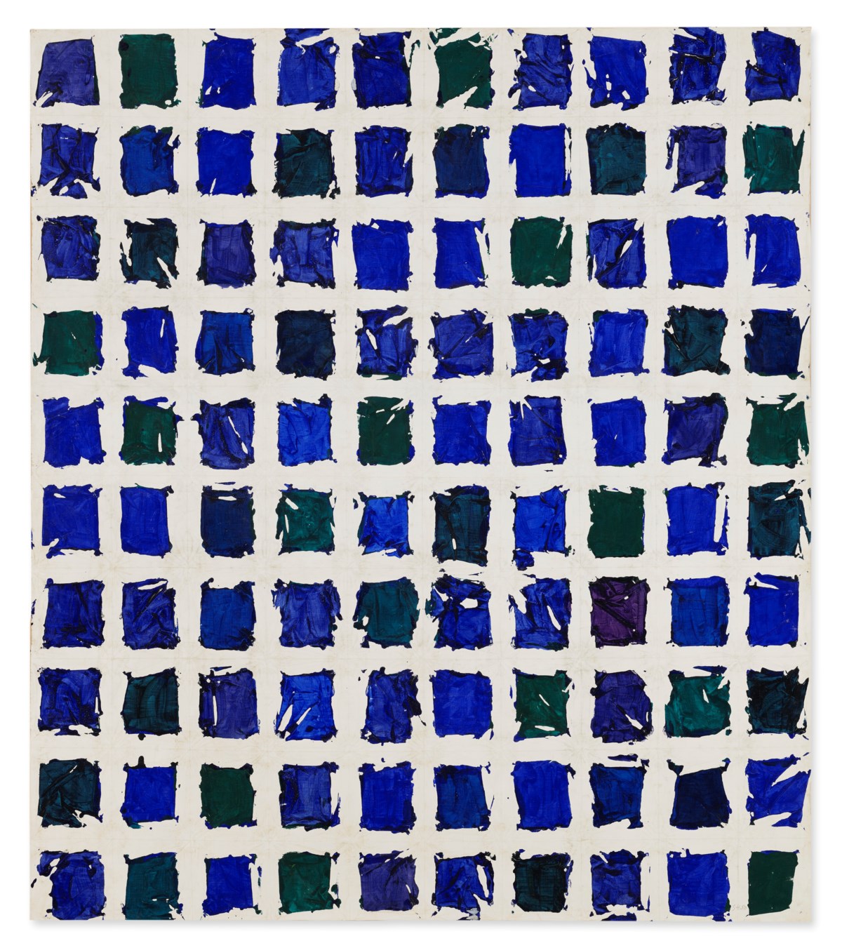 A monumental field of folded and crumpled canvas unfolds to reveal an intricate all-over pattern of luminous white voids set against vibrant expanses of saturated color. Hantaï's signature *pliage* technique — in which the canvas is bunched, tied, and painted before being spread open — surrenders compositional control to chance, producing organic, irregular shapes that pulse with rhythm and light. The result is a meditation on absence and presence, where the unpainted white traces of the folds become as expressive as the color itself.