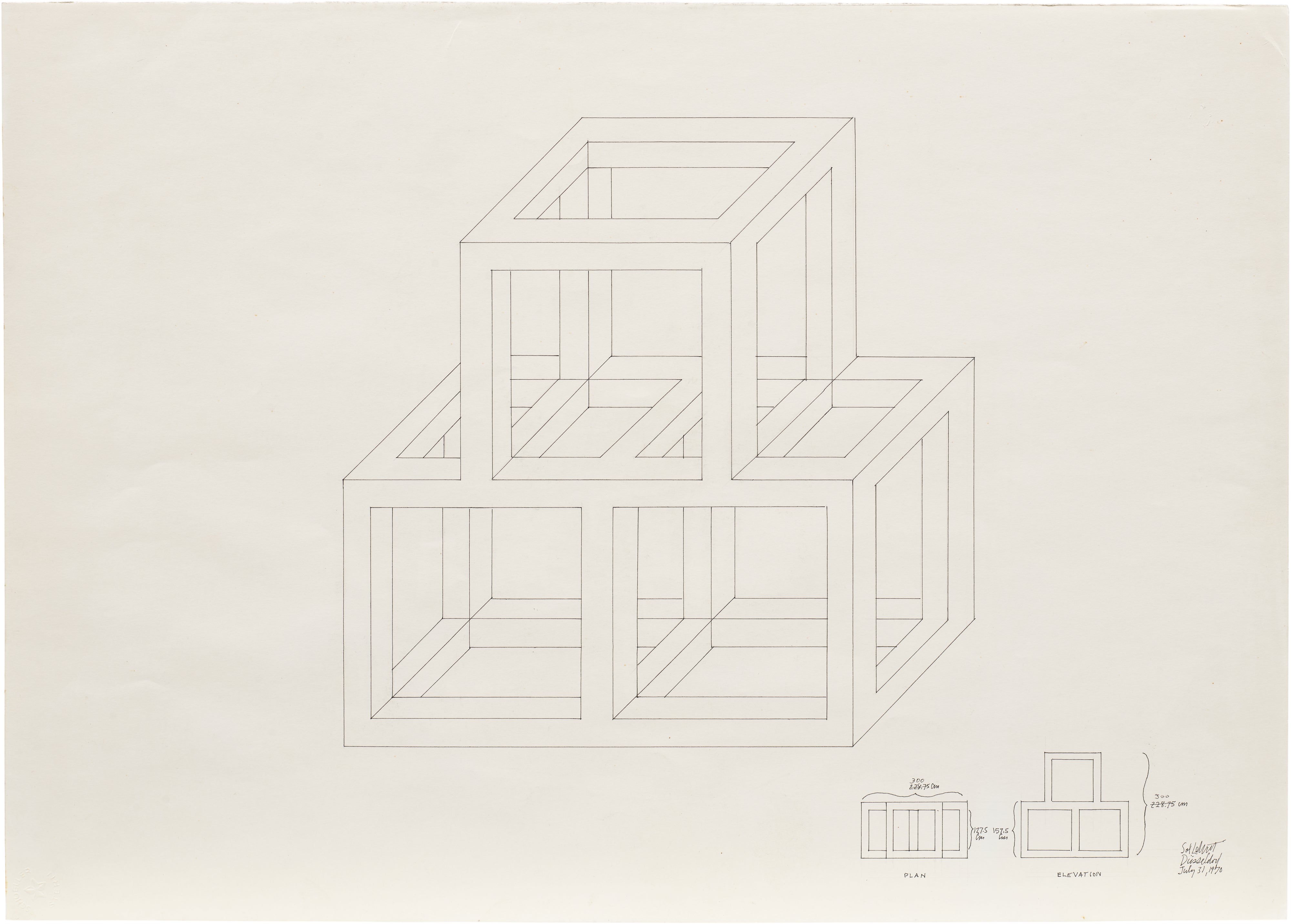A precise grid of finely drawn lines fills the paper in this early conceptual work by Sol LeWitt, reflecting his systematic exploration of geometry and repetition. Created in 1970, the ink drawing embodies LeWitt's belief that the idea itself is the machine that makes the art, with the hand serving as an executor of predetermined instructions. The work demonstrates his characteristic reduction of form to its most essential elements, merging mathematical rigor with a subtle, meditative visual rhythm.