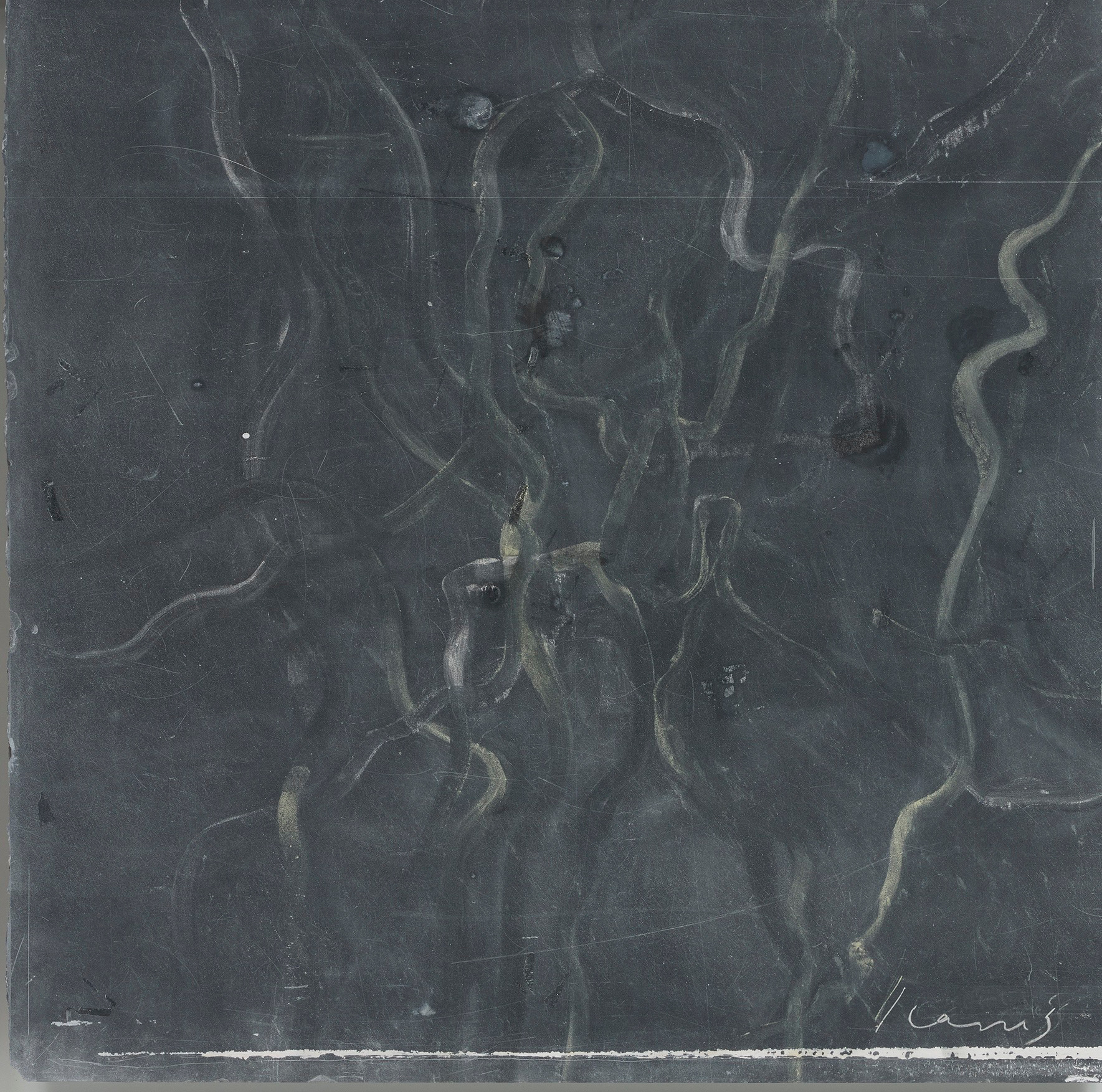 - Chalk, pearlescent powdered pigment, gouache on slate