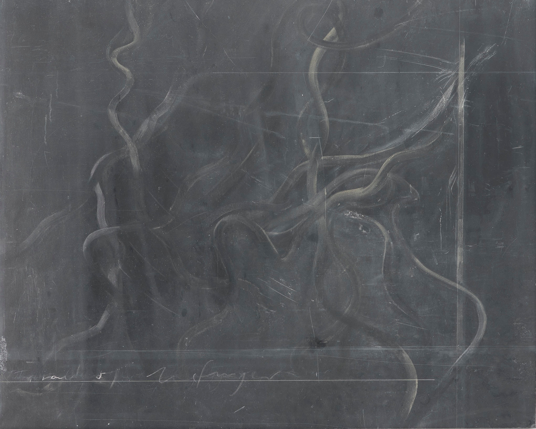 Trail of the Finger presents Tacita Dean's signature chalk-on-slate draftsmanship at its most intimate, a composition that hovers between drawing and erasure, between the deliberate mark and its inevitable dissolution. Measuring 53.3 x 66.7 cm on slate and framed to 58.7 x 72.1 cm, the work carries the quietly monumental quality that has come to define Dean's chalkboard pieces, where the impermanence of the medium is treated not as a limitation but as the subject itself. The gestural line implied by the title suggests both a physical act and a conceptual proposition, the tracing of something just out of reach, a path recorded by the lightest possible pressure against a surface that will not hold it forever. Dean has long explored time, film, and the fragility of analogue processes, and her slate works extend those concerns into a resolutely tactile register. Chalk on slate carries the memory of schoolrooms and scientific notation, of knowledge committed to a surface designed to be cleared. In Trail of the Finger, that tension between inscription and impermanence becomes especially charged, inviting the viewer to consider what it means to leave a mark, and what it means to know that mark will fade. The material modesty of the work belies its philosophical weight, as so much of Dean's practice does. Offered through Marian Goodman Gallery Los Angeles, Trail of the Finger is a compelling acquisition for collectors who engage seriously with conceptual drawing and the question of how ephemeral materials can sustain enduring ideas. The work belongs to a body of chalkboard pieces that have attracted sustained critical and institutional attention, and its scale makes it adaptable to a range of domestic and institutional contexts without sacrificing any of its formal authority.