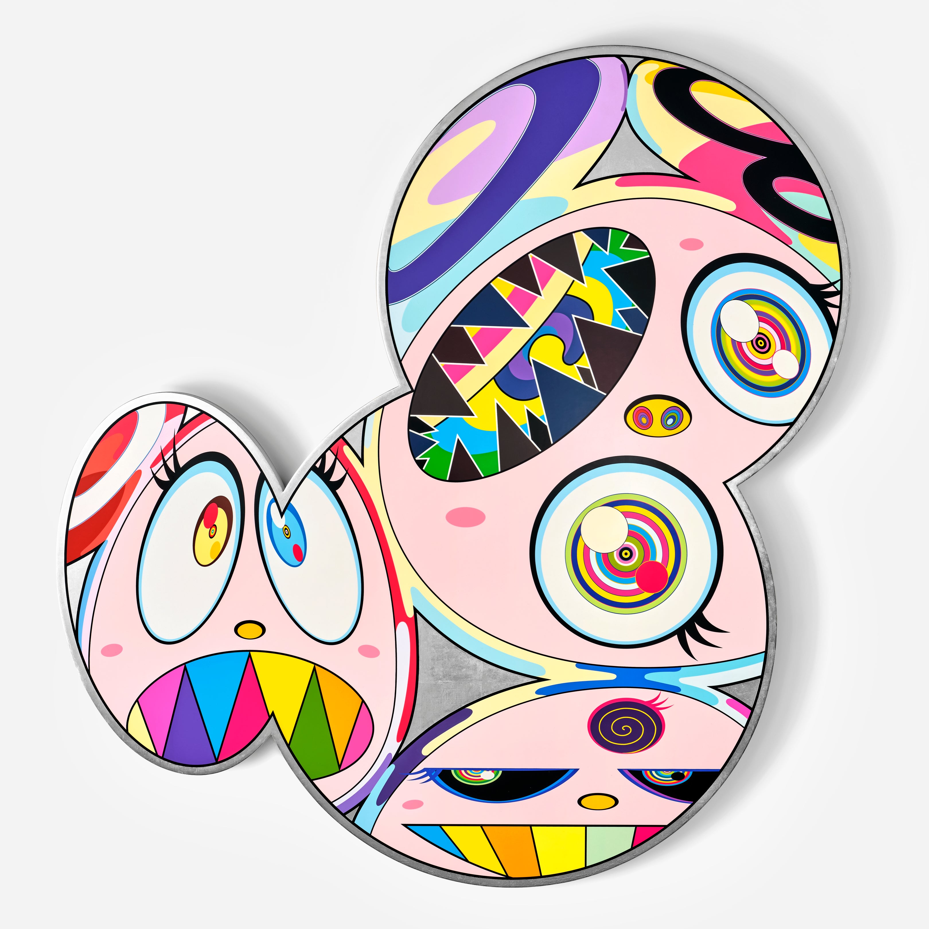 A vibrant and meticulously detailed composition, this 2019 work by Takashi Murakami showcases his signature superflat aesthetic, blending traditional Japanese artistic influences with contemporary pop culture imagery. Bold, graphic forms and cheerful motifs dance across the surface, while the luxurious platinum leaf adds a luminous, otherworldly shimmer that elevates the work beyond its flat visual language. The acrylic on canvas mounted on wood panel reflects Murakami's seamless fusion of fine art and commercial sensibility, collapsing the boundaries between high and low culture.