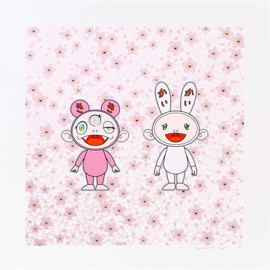 This 2020 screenprint exemplifies Murakami's masterful fusion of traditional Japanese motifs with his signature pop art sensibility, transforming the classical cherry blossom theme through vibrant colors and contemporary printmaking techniques. Part of a limited edition of 100, the work demonstrates the artist's continued exploration of cultural identity within his distinctive visual language.