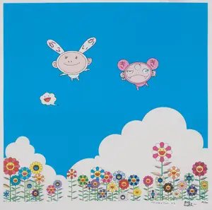 This 2002 offset lithograph by Takashi Murakami exemplifies the artist's characteristic blend of high art and commercial aesthetics, featuring his signature playful imagery and vibrant color palette. The work, limited to an edition of 200 and published by Kaikai Kiki Gallery, demonstrates Murakami's engagement with printmaking as a medium for disseminating his artistic vision beyond traditional gallery spaces. The title's conditional phrasing reflects the artist's exploration of desire and aspiration, themes central to his practice that interrogate the relationship between fine art and popular culture.