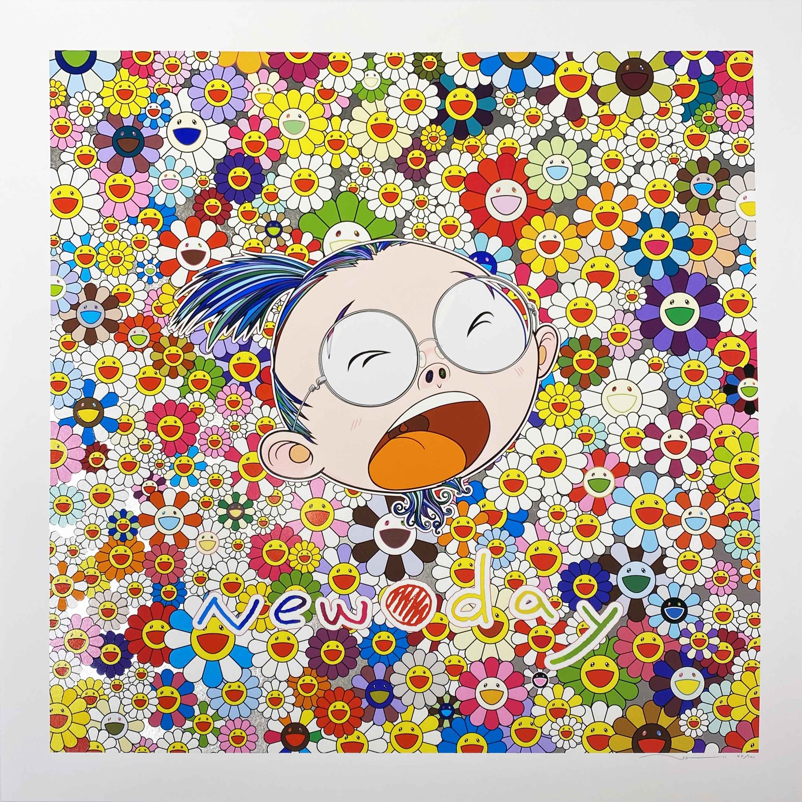 This silkscreen self-portrait represents a departure from Murakami's signature colorful pop iconography, presenting the artist in a more introspective mode while maintaining his masterful command of the printmaking medium. The work's intimate scale and contemplative subject matter offer a rare glimpse into the artist's personal reflection within his predominantly commercial practice.
