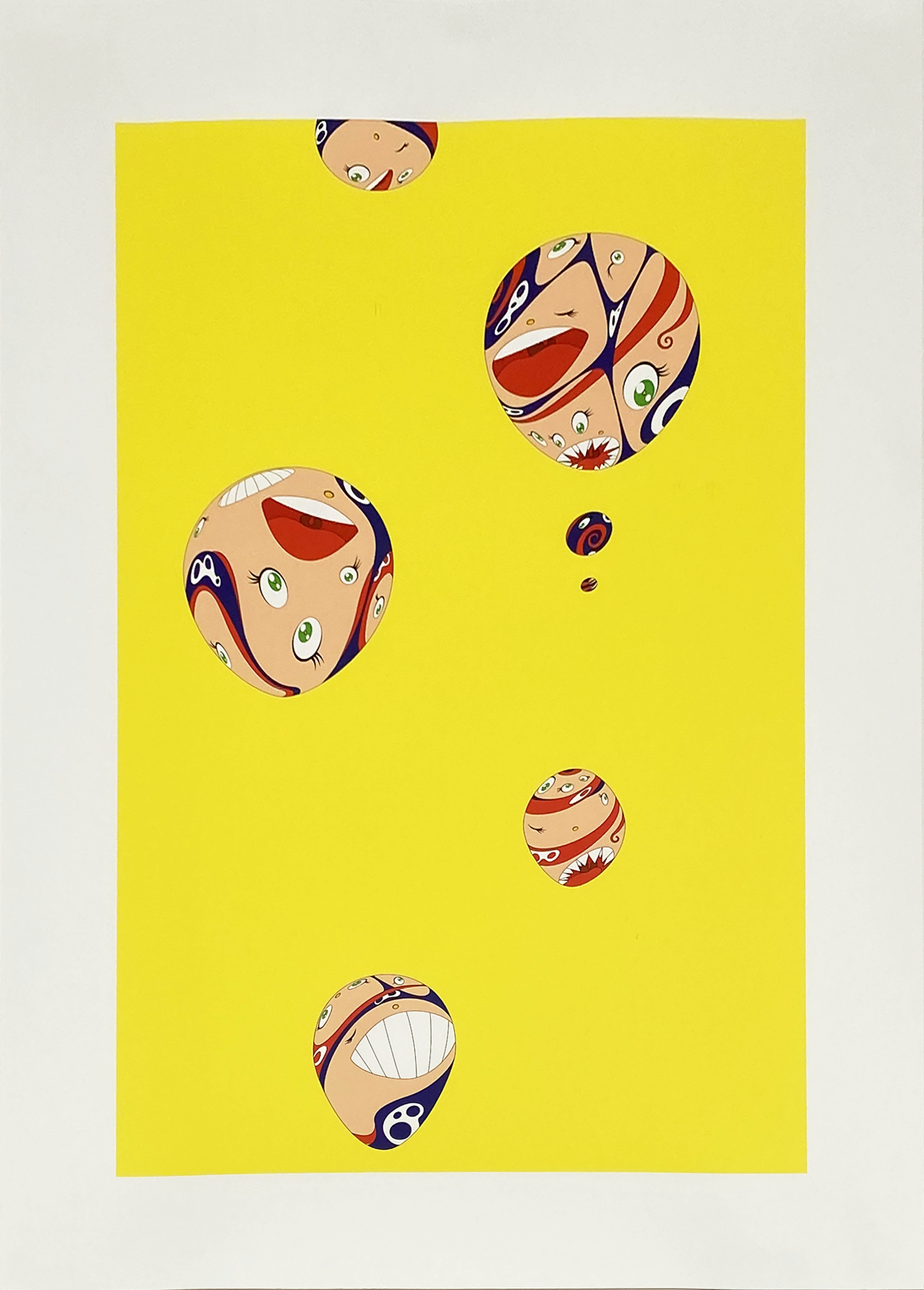 This early screenprint exemplifies Murakami's exploration of Japanese pop culture iconography through his signature "Superflat" aesthetic, featuring the artist's characteristic bold colors and cartoon-like imagery. Created during a pivotal period in his career, this limited edition work demonstrates Murakami's mastery of printmaking techniques while establishing the visual vocabulary that would define his international breakthrough.