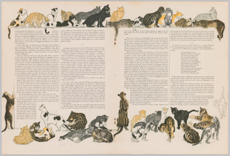 Combines color lithography with letterpress text to create an integrated book illustration that demonstrates Steinlen's mastery of commercial art. The work reflects his lifelong fascination with feline subjects and his ability to infuse commercial projects with artistic merit.
