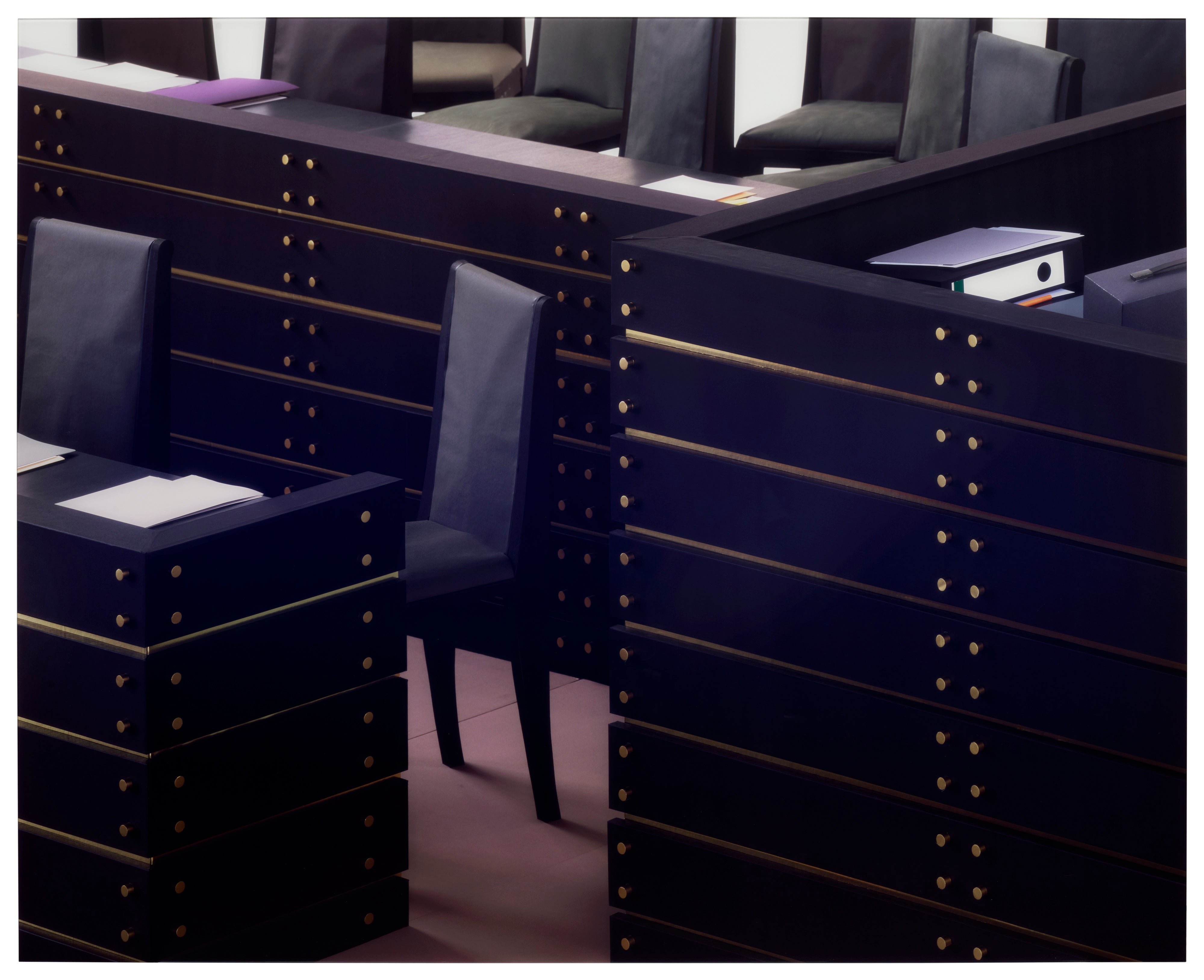Thomas Demand's chromogenic print from 2009 titled Parlament, exploring themes of politics and public space through photography. The work is face-mounted and mounted for exhibition.