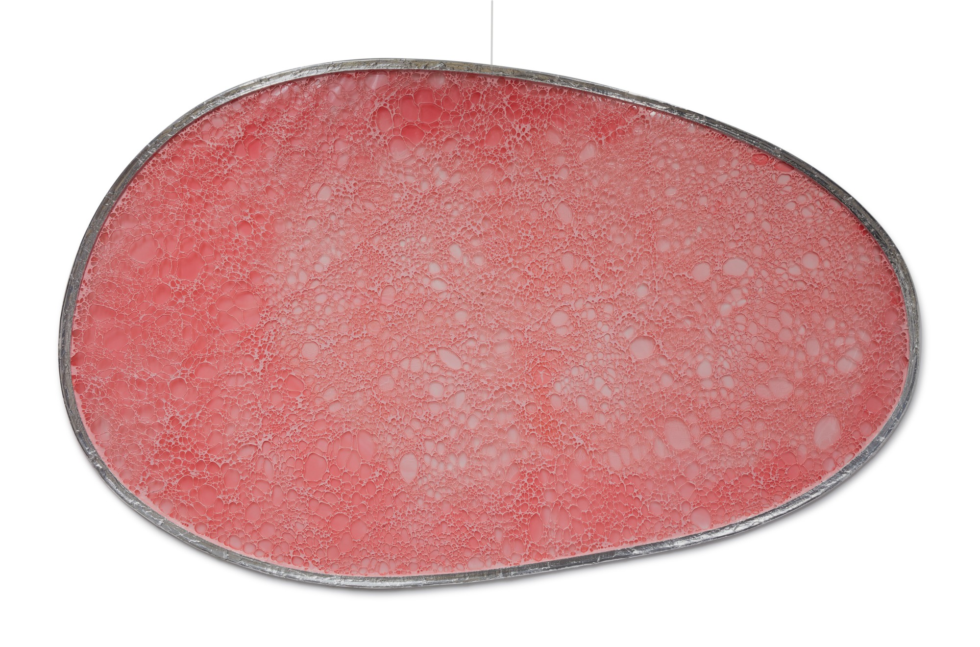 Tim Hawkinson's 2007 mixed media work 'Egg' incorporates aluminum with other materials to create a sculptural form. The piece demonstrates Hawkinson's inventive approach to transforming industrial materials into organic shapes.