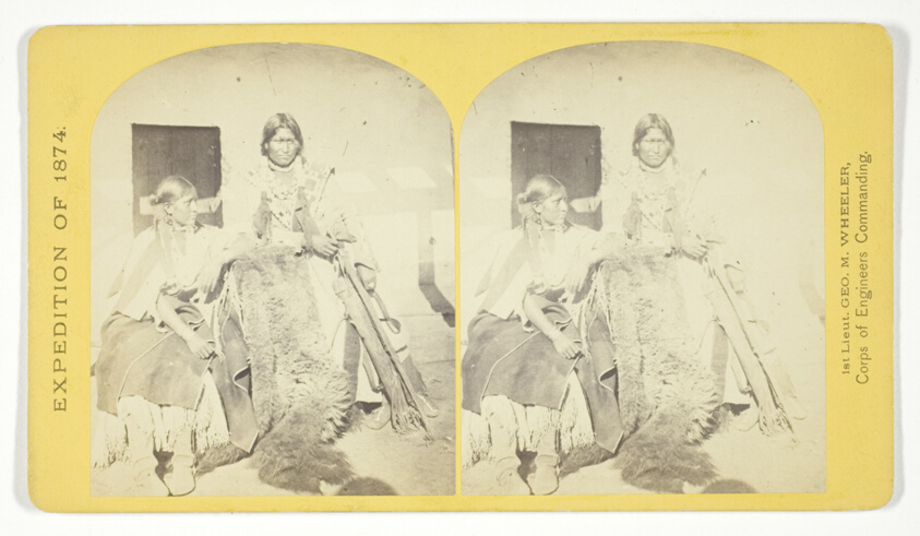 O'Sullivan's sensitive portrait of newlyweds provides intimate insight into Apache family life, representing his more personal approach to ethnographic documentation beyond the formal survey requirements.