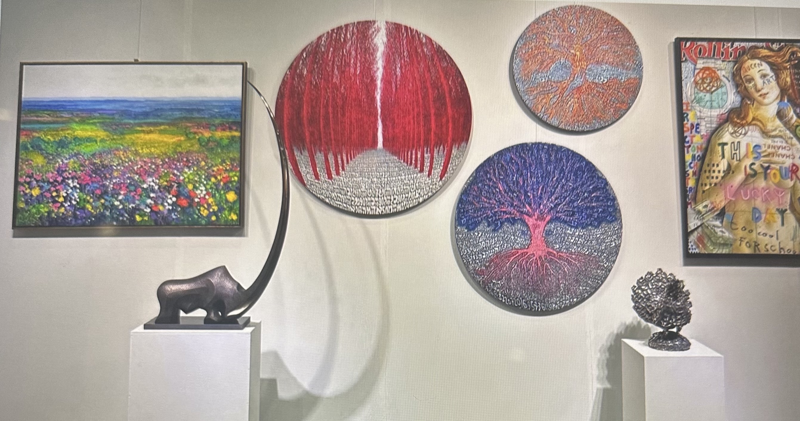 - Mixed media on circular canvas