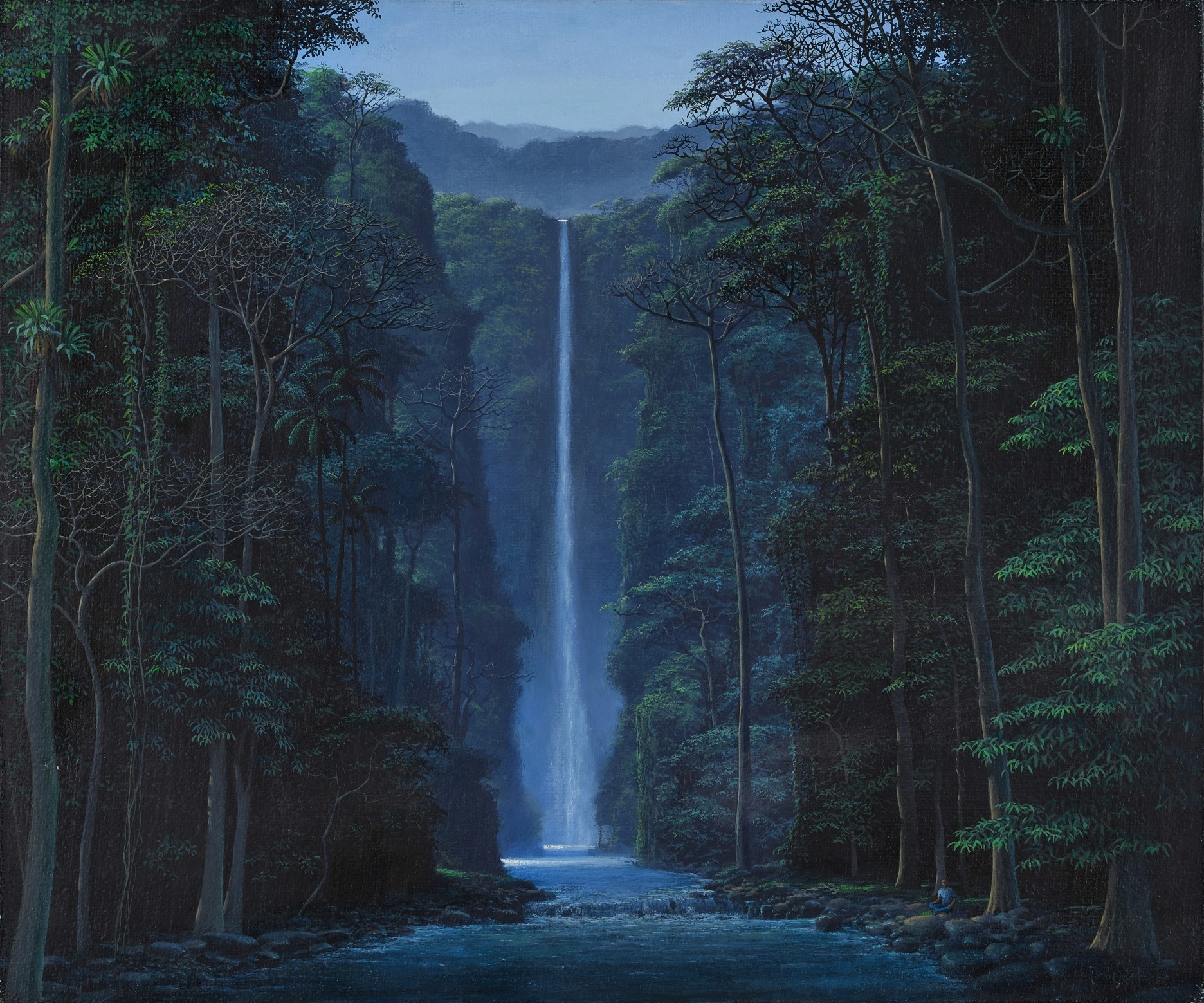 An oil on canvas work by Tomás Sánchez from 1993 titled El sonido de las aguas (The Sound of Waters). The piece reflects the Cuban artist's characteristic exploration of nature and landscape.