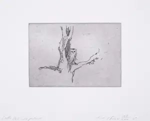 In this 2005 etching with plate tone, Tracey Emin presents a characteristically intimate self-portrait rendered through the whimsical figure of a little owl, combining her signature autobiographical approach with animal symbolism. The work demonstrates Emin's technical mastery of the etching medium, utilizing plate tone to create atmospheric depth and tonal variation across the composition. Published by Emin International in an edition of 200, this piece exemplifies the artist's continued exploration of identity and vulnerability through both printmaking and figurative representation.