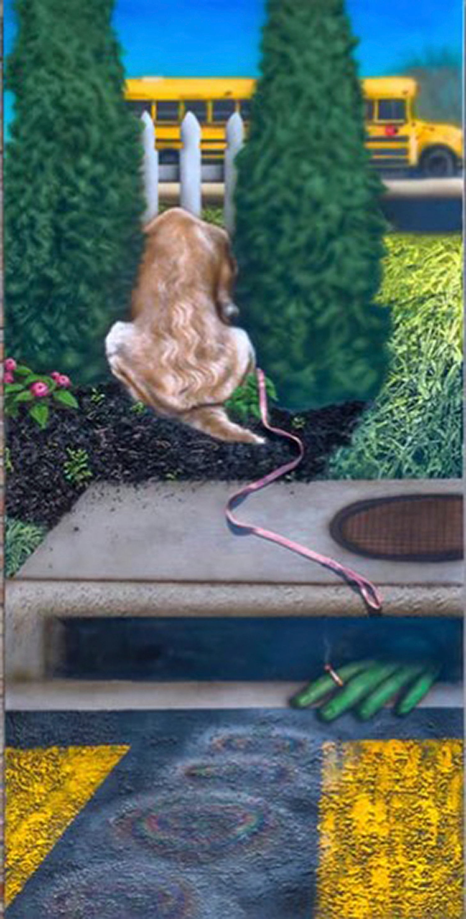 - acrylic, glass, gravel, urethane, shredded rubber band and glitter on canvas