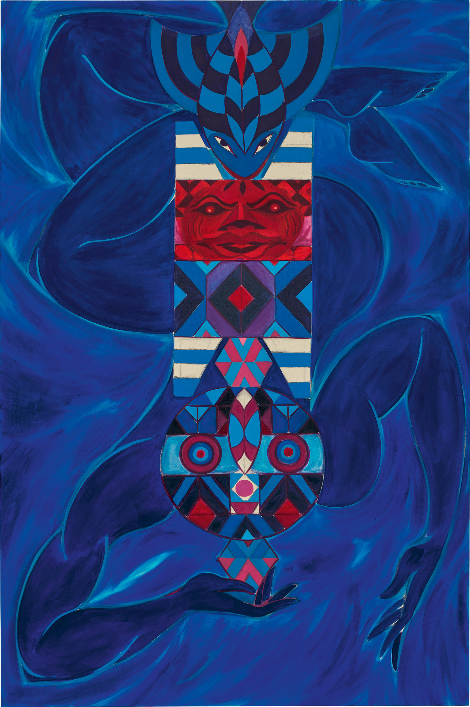 Tunji Adeniyi-Jones's 'Blue Ancestor' from 2019 is an oil on canvas work that explores themes of ancestry and identity through expressive figuration. The painting demonstrates the artist's engagement with cultural memory and ancestral representation.