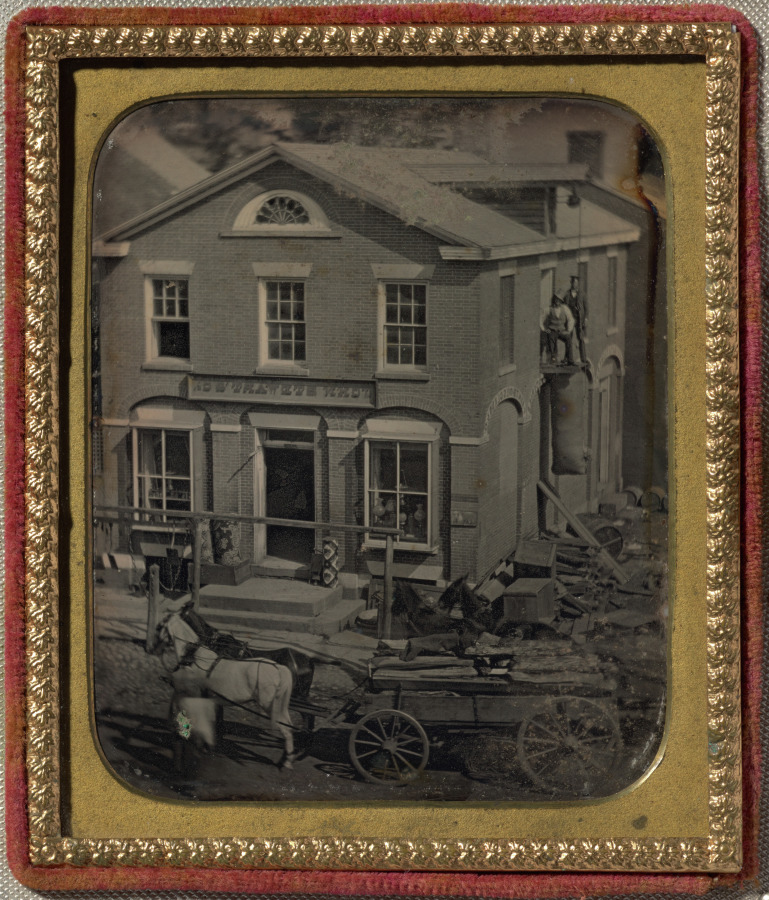 One of the earliest forms of architectural photography, this daguerreotype captures the construction process itself, revealing both the commercial development of American towns and the documentary potential of the medium.