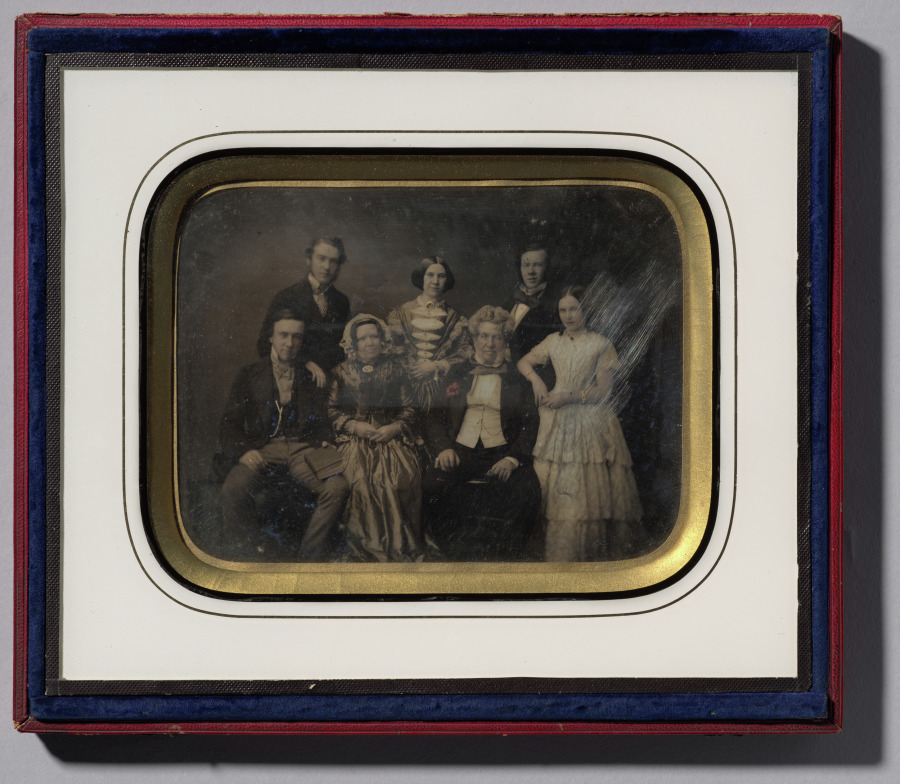 Large-format daguerreotype technology enabled ambitious family portraits like this one, showcasing the medium's ability to accommodate multiple figures while maintaining sharp detail.