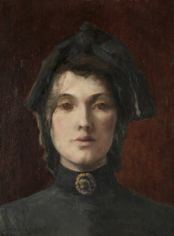 Modernist sensibilities emerge in this straightforward portrait study that emphasizes form and character over decorative detail.