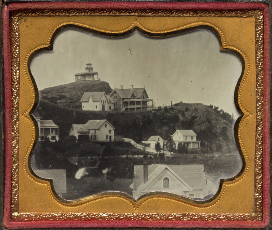 Regional American landmarks like Lynn's High Rock Tower found their way into photographic documentation, creating visual records of local pride and 19th-century architectural curiosities.