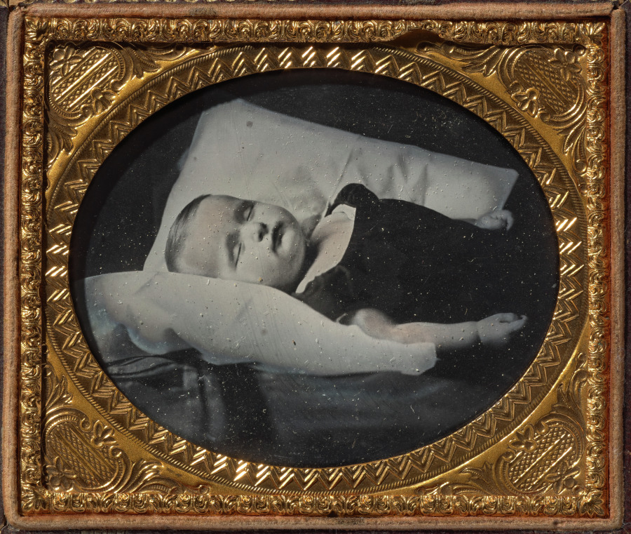 Representative of Victorian mourning culture, this somber ambrotype reflects the era's complex relationship with death and photography's role in preserving memory beyond life.