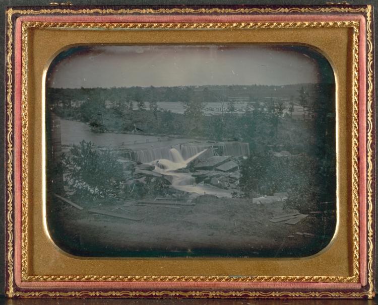 Among the earliest photographs of Minneapolis's iconic waterfall, this half-plate daguerreotype captures both natural grandeur and America's expanding industrial landscape.
