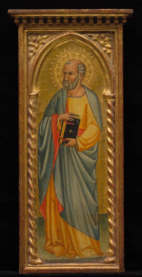 Rendered in tempera on panel, this standing saint exemplifies medieval religious art's focus on spiritual figures as intermediaries between the earthly and divine realms.